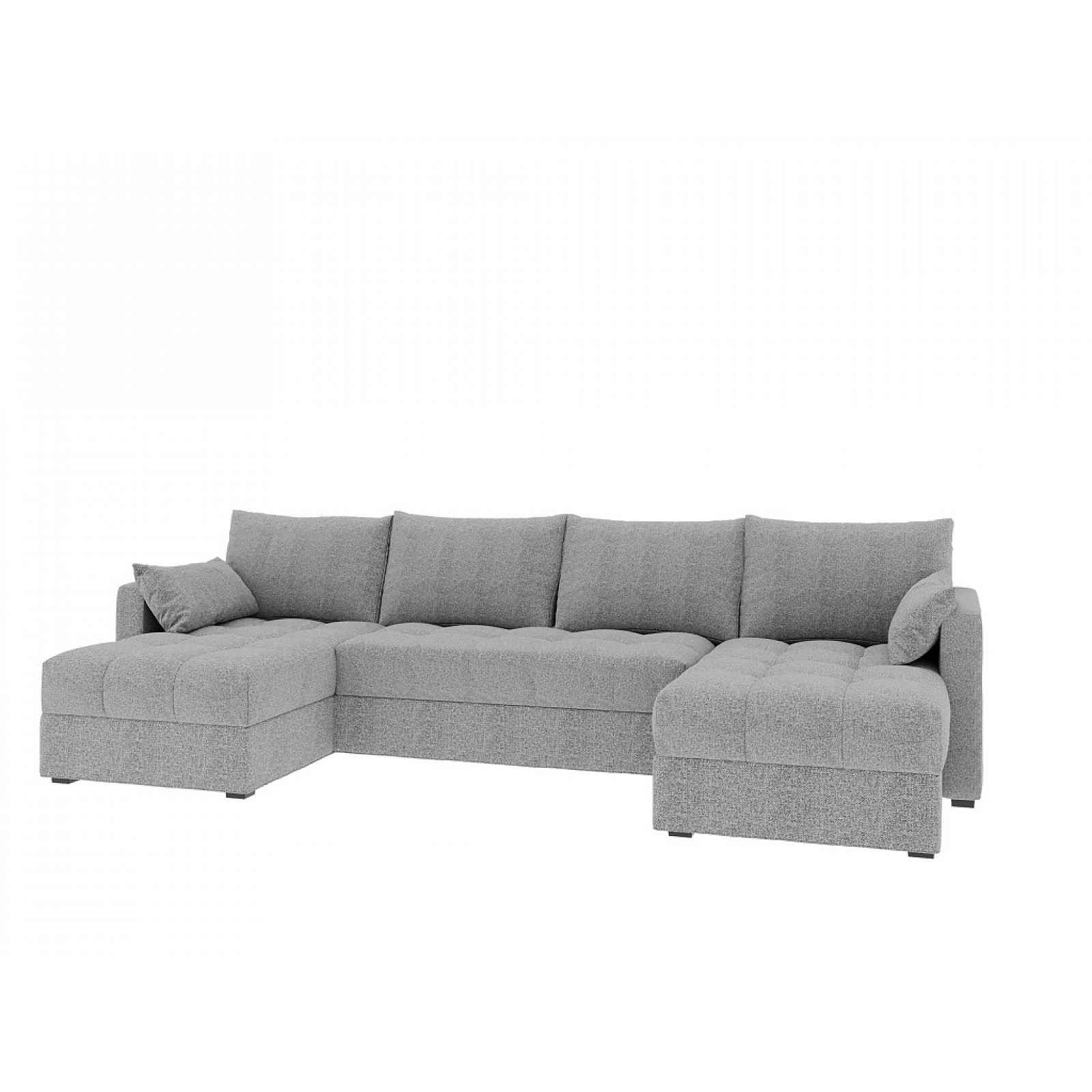 Rozkládací rohová sedačka ve tvaru U Sedačka je univerzální. Součástí jsou 4 velké a 2 menší polštáře a úložný prostor. Celočalouněná, vhodná do prostoru. Sedačka má prošívaný sedák. Potahová látka: malmo 90 = světle šedá látka Rozměr (šxvxh): 298 x 83 x 143 cm Ložná plocha (šxh): 270 x 140 cmVýška sedu: 43 cm Materiál: pěna poliuretanová T30 -nízké nohy: černý plast Dodáváno v demontu.