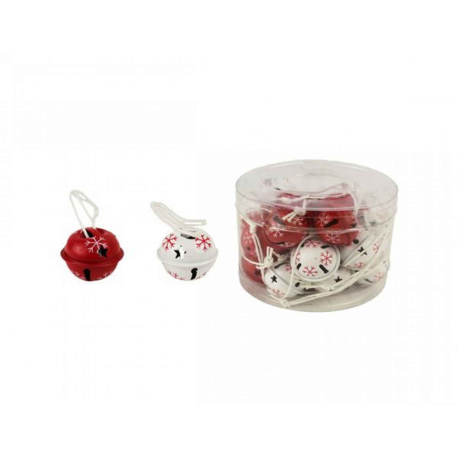 Sada dekoračních rolniček k zavěšení. Sada obsahuje 24 rolniček. Rozměry : průměr 2,5 cm, výška 2 cm. Barva : červená, bílá. Materiál : kov.