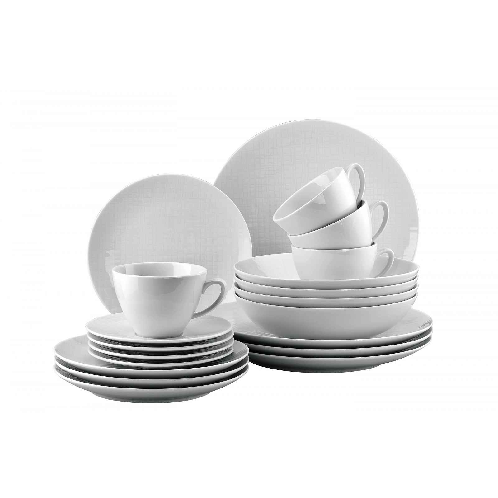 4x kombi hrnek s uchem, 0,29 l (vhodný na kávu i čaj)4x kombi podšálek4x snídaňový talíř Ø 21 cm4x jídelní talíř Ø 27 cm4x hluboký talíř Ø 21 cm Kolekce Mesh White: Poetická geometrie bambusového lesa. Podoba velmi úspěšné kolekce Mesh je dílem španělské průmyslové designérky Gemmy Bernal. Obsahuje nejen základní jídelní talíře, ale také plno jednotlivých kousků pro tapas a sladké i slané bufety. Charakteristickým rysem je jemný mřížkový reliéf pod glazurou, někomu připomínající geometrickou mřížku, jinému bambusový les. Nápaditá a variabilní kolekce Mesh zkrátka mění klasické stolování na místo plné inspirativní prezentace pokrmů a přináší do vašeho domova nový význam slova "všestrannost." Je navíc velmi dobře kombinovatelná s barevnými variantami, jako je například Mesh Aqua nebo Mesh Mountain. Technické specifikace:. Materiál: porcelánMikrovlnná trouba: anoMyčka nádobí: ano Made in Germany. Německá značka Rosenthal představuje inovaci, design, kvalitu a sofistikované řemeslné zpracování perfektního porcelánu už od roku 1879. Dáváte přednost inovativnímu soudobému designu? Pak je designová produkce studia-line, inovativní dílny, vytvořené ve firmě Rosenthal už roku 1961, připravována právě pro vás. Navrhovali pro ni designeři světového jména jako Björn Wiinblad, Otmar Alt, Paul Wunderlich, Jasper Morrison, Walter Gropius a také náš Bořek Šípek.