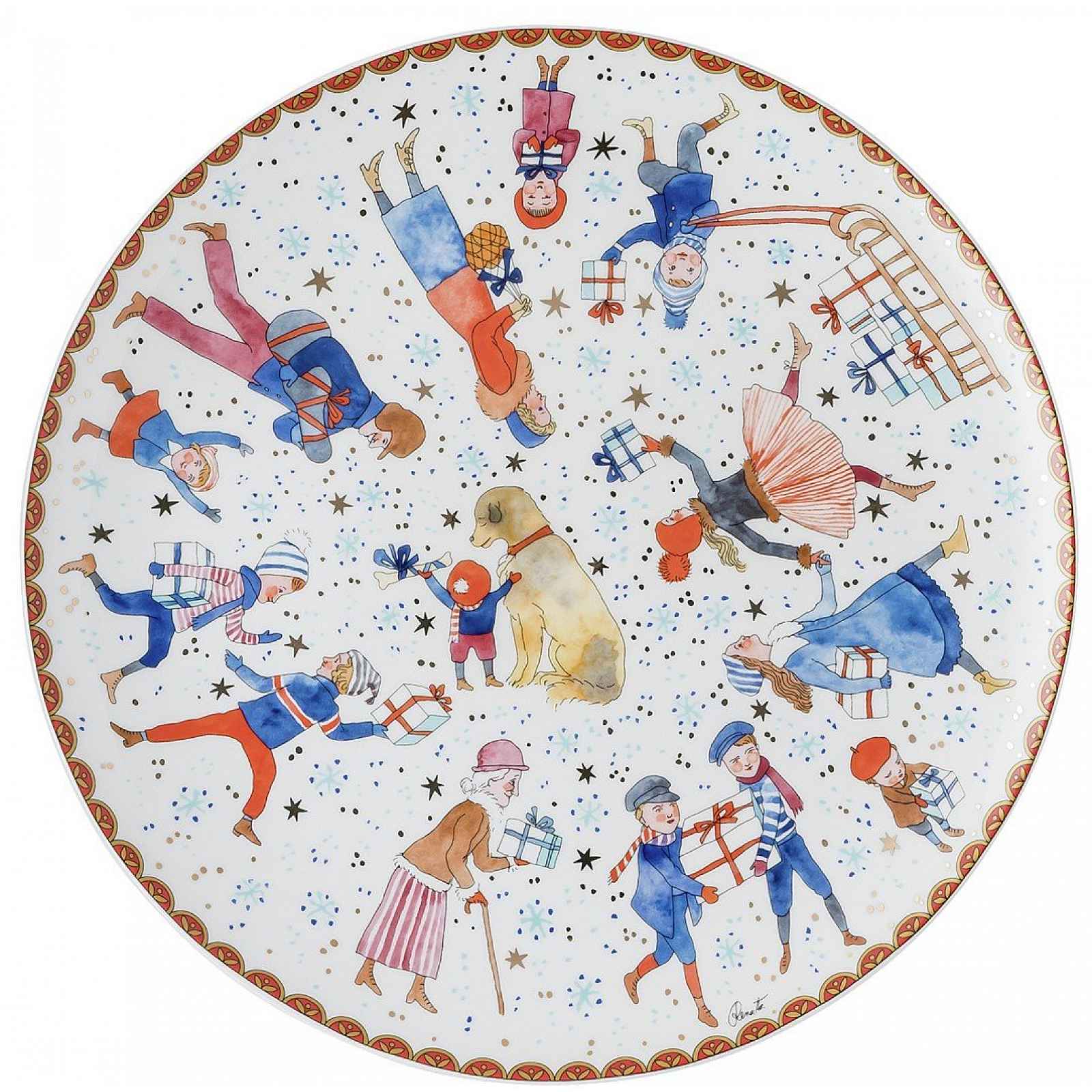 Porcelánový servírovací talíř, který využijete i jako tác pro vánoční sladké i slané delikatesy, cukroví, vánočku, štolu nebo jiné sváteční pečivo. Je po celém svém povrchu zdoben postavičkami dětí i dospělých, nesoucích nebo dokonce na saních vezoucích někomu vánoční dárek. Autorkou námětu je opět česká výtvarnice a ilustrátorka Renáta Fučíková, která i pro rok 2021 navrhovala vánoční kolekci porcelánky Hutschenreuther značky Rosenthal, tentokrát s motivy vánočního rozdávání dárků.Průměr: 28 cmNevhodné do mikrovlnné trouby Zimní vánoční pohádka z pera Renáty Fučíkové. Motivy vánoční kolekce porcelánky Hutschenreuther 2021 pocházejí znova z pracovny ilustrátorky Renaty Fučíkové, která navázala na 3 předcházející úspěšné kolekce "Winter Friends – Zimní radovánky", "Christmas Market – Vánoční trh" a " Vánoční pečení – Christmas Bakery". Česká výtvarnice tentokrát využila motiv rozdávání radosti v čase Vánoc a vánoční kolekce roku 2021 je tak příznačně nazvaná "Christmas Gifts – Vánoční dárky". Vánoce jsou tradičně oslavovány jako svátky radosti, štěstí a sounáležitosti v rodinném kruhu. Renáta Fučíková pak svými motivy v jemných, zimních barvách s perfektně vykreslenými detaily letos inspiruje k přinášení radosti nejen v rámci své rodiny a přátel, ale také nabádá k přilepšení našim malým kamarádům z živočišné říše. Obdarovávání lesních i domácích zvířátek tak tvoří ústřední motiv většiny vánočních talířů a také některých hrnků. Opakujícím se motivem pak jsou holé zimní větvičky s červenými bobulkami ptačího zobu, někde ještě doplněné propracovanými kresbami ptáčků. Scénky jsou orámovány sváteční červeno-zlatou girlandou nebo zlatým lemováním a sněhovými vločkami, tiše se snášejícími z oblohy na zem. Vánoční nálada je ještě podpořena barevným laděním, které se na porcelánu objevuje. Osvědčená kombinace sněhově bílé barvy porcelánu s modrou, červenou a zlatou je zkrátka pro Rosenthal klasikou. Pro váš nejkrásnější Štědrý večer. Sběratelská kolekce 2021 Christmas Gifts – Vánoční dárky s motivy od Renáty Fučíkové kromě již tradičních závěsných ozdob ve tvaru koule, zvonečku, šišky a botičky obsahuje také limitované edice sad závěsných ozdob a velké množství dárkově baleného užitného porcelánu, od talířů ve tvaru hvězd přes mísy, šálky s podšálky až po svícen na čajovou svíčku, sněžítko-těžítko či hrací strojky, které letošní Vánoce potěší své majitele vánoční koledou We wish you a merry Christmas. Součástí kolekce jsou i zdobené plechové krabičky na cukroví a papírové ubrousky. Kolekce porcelánky Hutschenreuther 2021 Vánoční dárky zkrátka opět nabízí vše, co k vytvoření dokonalé vánoční atmosféry potřebujete, popřípadě vaše minulé kolekce doplní. Ta letošní se zvolenými ústředními barvami shoduje s úplně první autorskou kolekcí české výtvarnice z roku 2017 (Zimní radovánky / Winter Friends). Ostatně sama Renáta Fučíková v loňském rozhovoru pro časopis Forbes říká:„Pokud se budou moje věci lidem líbit, mohou si rok co rok dokupovat talíře a misky v podobném stylu. Navzájem ladí i barevně.“ Renáta Fučíková . Je česká výtvarnice, ilustrátorka a spisovatelka působící od roku 1988 na volné noze. Její portfolio je široké, od ilustrací pohádek a knih pro děti, přes ilustrace titulů z žánru fantasy a knih o historických osobnostech, po vlastní autorské knihy. Její výtvarný rukopis nesou i některé programové brožury Národního divadla, spolupracuje s Českou poštou, pro kterou zatím vytvořila 6 poštovních známek. Je nositelkou mnoha mezinárodních ocenění. V roce 2016 přijala nabídku působit na Fakultě designu a umění Ladislava Sutnara Západočeské univerzity v Plzni, kde je od roku 2019 vedoucí ateliéru Didaktické ilustrace. S porcelánkou Rosenthal-Hutschenreuther spolupracuje od roku 2017.