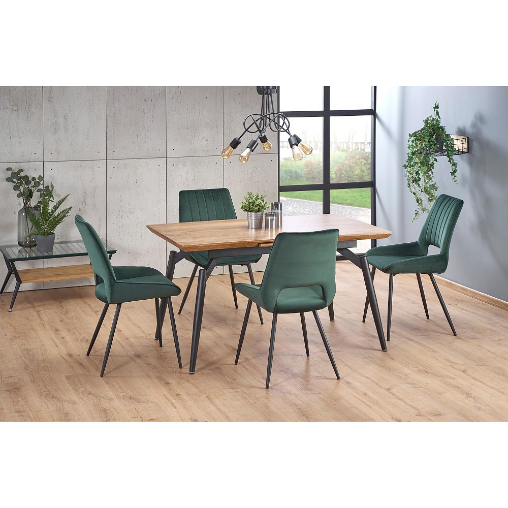 Rozkládací jídelní stůl Barva: přírodní, nožky - černá Rozměry (šxvxh): 140-180 x 74 x 80 cm Materiál: dýhovaná MDF, lakovaná práškovaná ocel Židle nejsou v ceně. Dodání v demontu Záruka 24 měsíců.