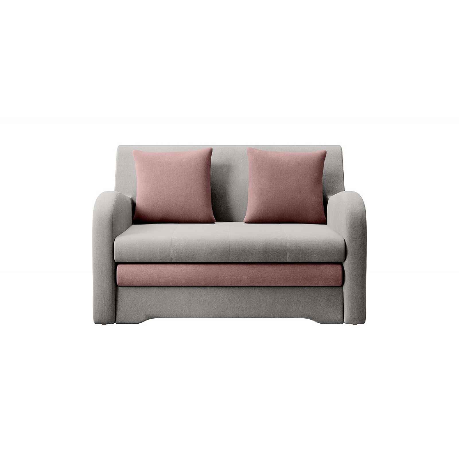 Rozkládací pohovka s úložným prostorem a dekoračními polštářky.Záda pohovky jsou čalouněná, je tedy možno ji umístit do prostoru.Barva: látka nube 03 - světle šedá/nube 24 - růžováMateriál: pěna T25/T28Rozměry (šxvxh): 130 x 85 x 103 cm- plocha na spaní (šxh): 193 x 111 cm- hloubka sedu 64 cm- výška sedu 45 cm- výška plastových nožek 1,5 cmNosnost 160 kgDodáváno v demontu.