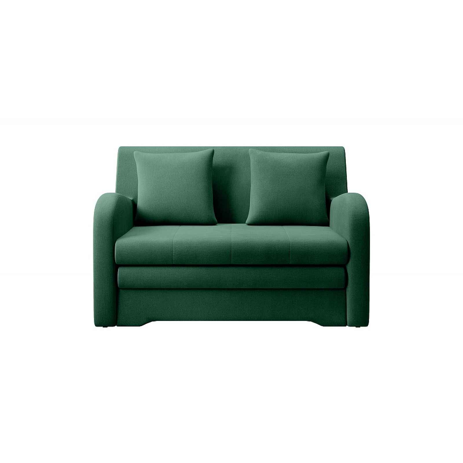 Rozkládací pohovka s úložným prostorem a dekoračními polštářky.Záda pohovky jsou čalouněná, je tedy možno ji umístit do prostoru.Barva: látka nube 35 - zelenáMateriál: pěna T25/T28Rozměry (šxvxh): 130 x 85 x 103 cm- plocha na spaní (šxh): 193 x 111 cm- hloubka sedu 64 cm- výška sedu 45 cm- výška plastových nožek 1,5 cmNosnost 160 kgDodáváno v demontu.