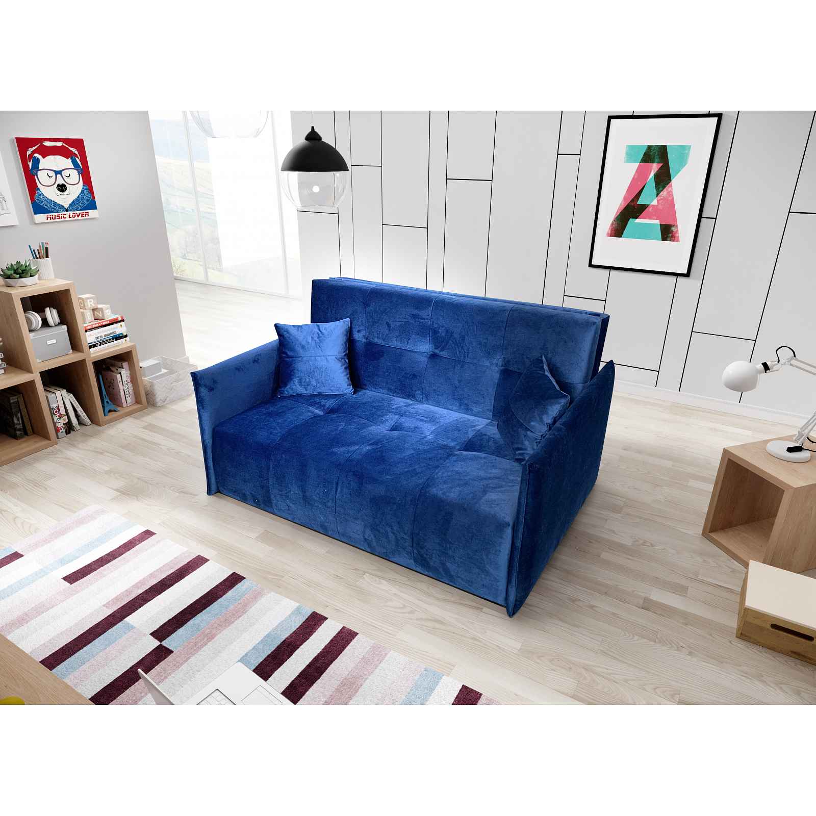 Rozkládací pohovka - dvojsedák Potahová látka: monolith 77 = modrá látka Součástí jsou polštáře se zapínáním na zip a úložný prostor. Celočalouněná, vhodná do prostoru. Rozměr (šxvxh): 146 x 85 x 105 cm Ložná plocha (šxh): 131 x 200 cmVýška sedu: 37 cmHloubka sedu: 66 cmRozměry úložného prostoru (šxhxv): 129 x 66 x 19 cmVýška nožek: 3,5 cm Materiál: pružina vlnitá, owata, polyuretanová pěna T25 Dodáváno v demontu. Záruka 24 měsíců.