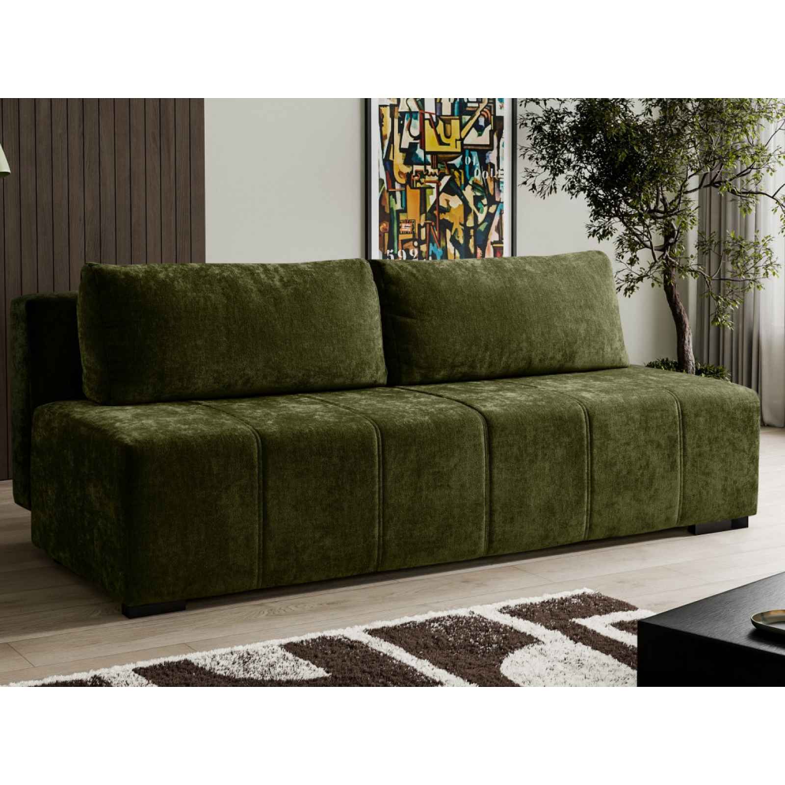 Menší pohovka s polštáři nabízí praktickou rozkládací funkci i úložný prostor, kam můžete uschovat různé věci. Očalouněna měkkou žinilkovou látkou v barvě lahvově zelená. Rozměrově pasuje nejen do obýváku, ale i například do pokoje pro hosty anebo jinam. - konstrukce: dřevo, dřevotříska, překližka, kov - jádro: vlnovcové pružiny, polyuretanová pěna, čalounický flís - potah: látka Sereno 690 - jemně strukturovaná měkká látka, barva lahvově zelená (složení: 100% PES, otěruvzdornost: 80.000 cyklů) - včetně potažení zadní části (možné umístění i v prostoru) - okrasný dvojitý prošev potahu - 2 x velký opěrný polštář (snímatelný potah na zip, cca 89x40 cm) - sedák: středně měkký - opěrák: opěrné polštáře - středně měkké - výška sedu: 44 cm - hloubka sedu s polštáři: 49 cm/bez polštářů: 73 cm - celková výška bez polštářů: 72 cm/s polštáři: cca 84 cm - nohy: plast, černé, výška 4 cm - funkce rozkladu na příležitostné lůžko: plocha 127x197 cm (sklápěcí typ rozkladu – příležitostné lůžko snadno vznikne po vysunutí sedáku vpřed a sklopení opěráku) - úložný prostor (pod sedákem) - univerzální do každého interieru - dodáváno v částečném demontu