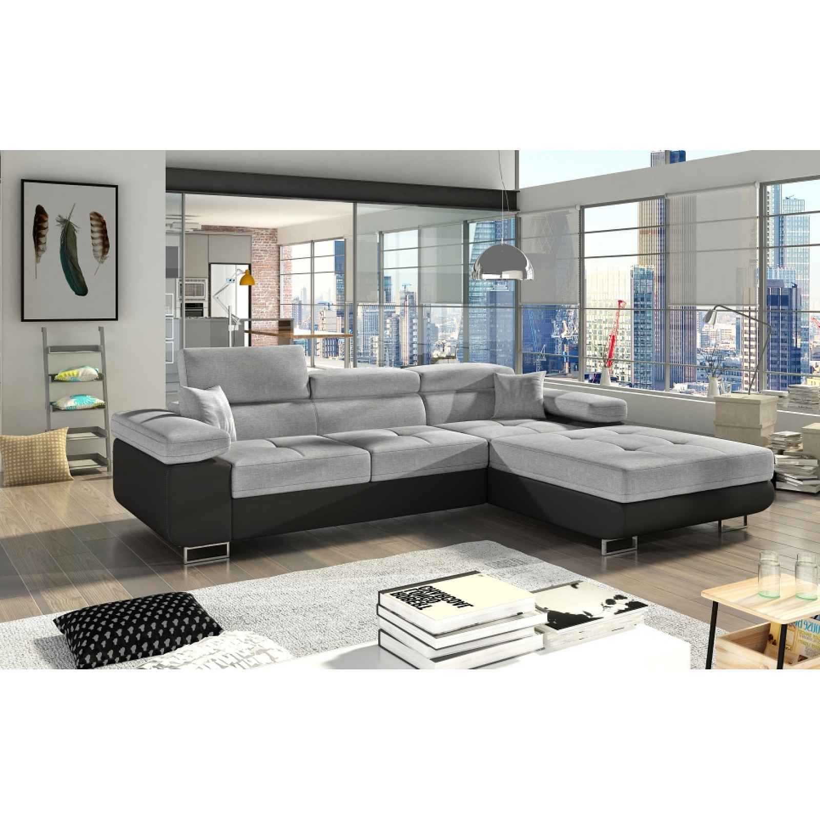 Rozkládací rohová sedačka Provedení: PRAVÉZadní část sedačky je potažená látkou, je tedy možné postavit ji kdekoliv v prostoru.Obrázek rozložené sedačky je pouze ilustrativní (jiná barva)!Materiál: kombinace látky a ekokůže Potahová látka: Sawana 21 = světle šedáPotahová ekokůže: Soft 11 = černá Rozměr (šxvxh): 280 x 70/90 x 205 cm -výška sedu: 43 cm-hloubka sedu: 60 cm-plocha na spaní po rozložení: 125 x 198 cmMechanismus rozkladu: delfínMateriál nožek: kovSedačka má úložný prostor Dodáváno v demontu.
