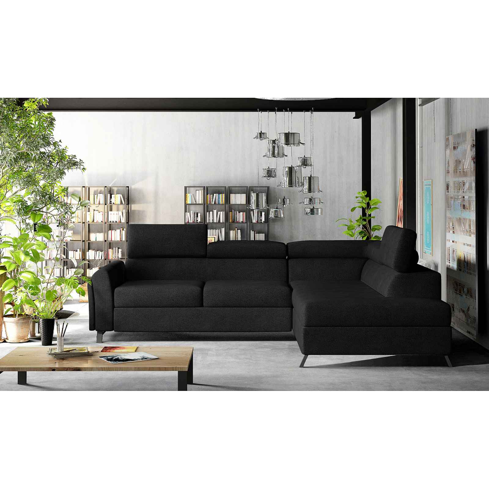 Rozkládací rohová sedačka Provedení: PRAVÉMateriál: látkaFotografie rozložené sedačky je ilustrativní, jiná barva! Potahová látka: Soro 100 = černá Rozměr (šxvxh): 265 x 65/95 x 197 cm -výška sedu: 43 cm-hloubka sedu: 60 cm-plocha na spaní po rozložení: 125 x 190 cmMechanismus rozkladu: delfín Dodáváno v demontu.