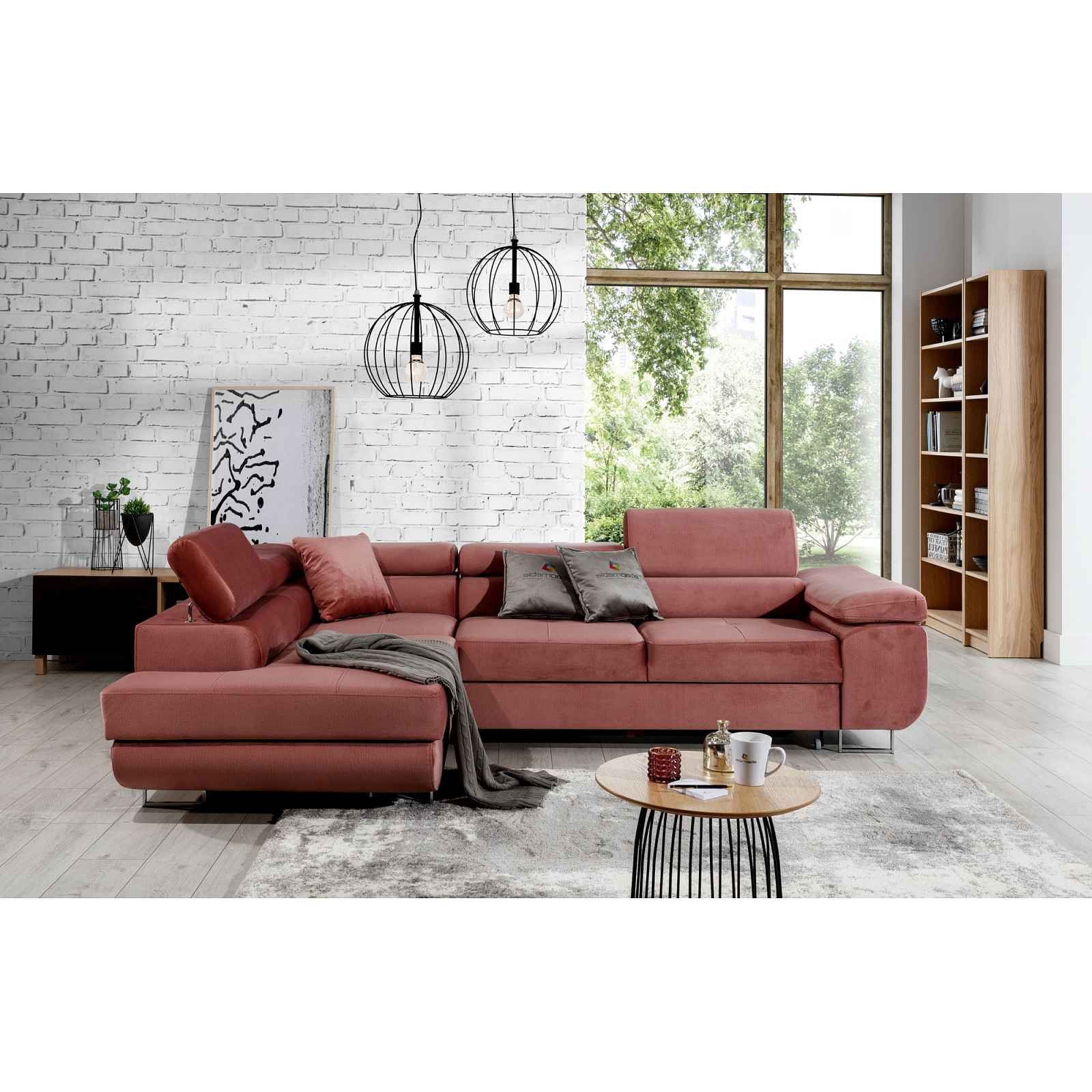 Rozkládací rohová sedačka Provedení: LEVÉMateriál: látkaZadní část sedačky je potažená látkou, je tedy možné postavit ji kdekoliv v prostoru. Obrázek rozložené sedačky je pouze ilustrativní (jiná barva)! Potahová látka: Monolith 63 = růžová Rozměr (šxvxh): 275 x 70/90 x 202 cm -výška sedu: 43 cm-hloubka sedu: 60 cm-plocha na spaní po rozložení: 125 x 193 cmMechanismus rozkladu: delfín Dodáváno v demontu.