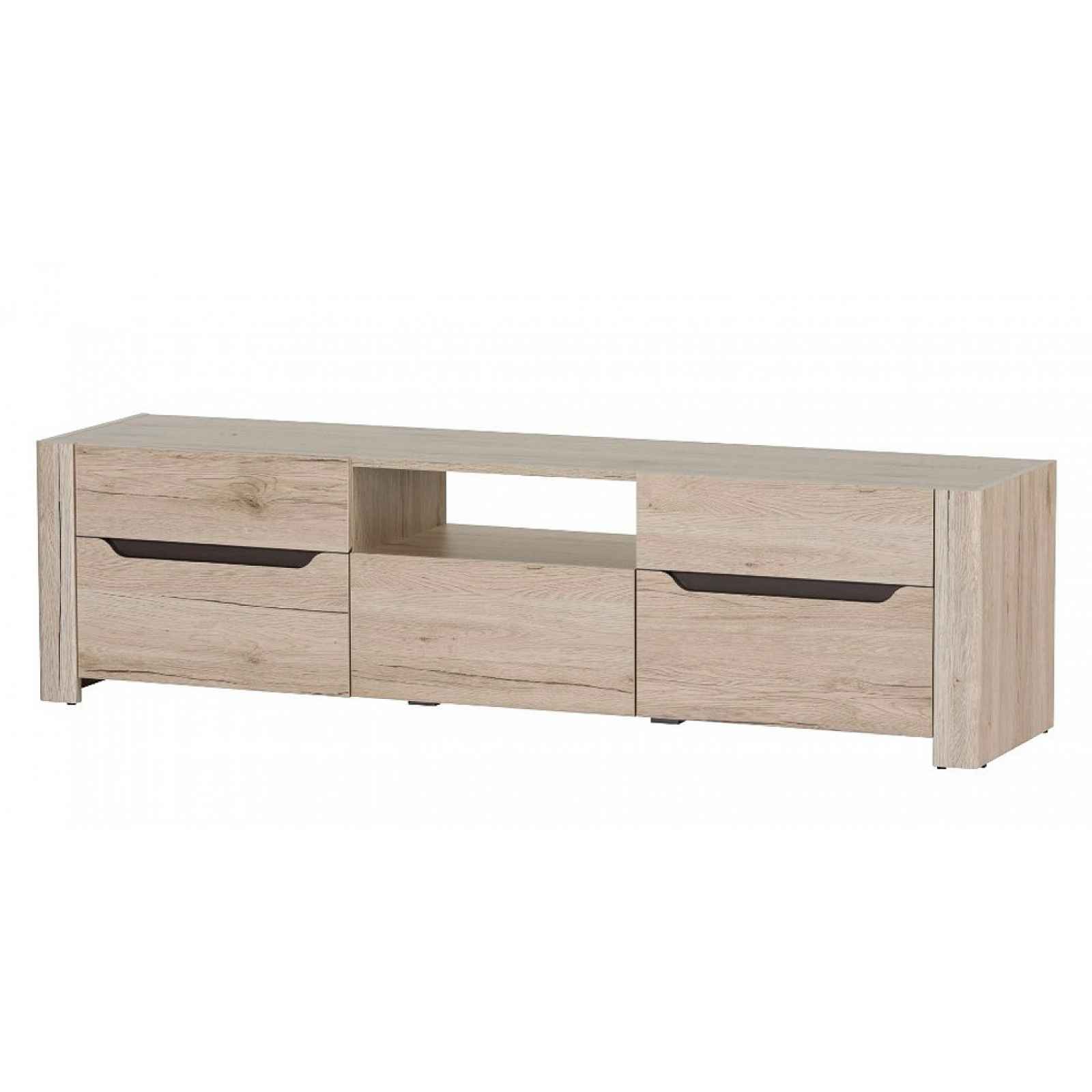 RTV stolek Tento moderní nábytek je součástí sestavy určené do jídelny nebo obývacího pokoje. Celá řada se vyznačuje úspěšnou kombinací současné a moderní přírodní formy. Jednoduchý styl umocňuje senzační bezúchytový systém nábytku. Vyrábí se z vysoce kvalitní dýhované dřevotřískové desky s fólií, sklo je tvrzené s hnědým zabarvením. Dekor s 3D efektem vizuálně dává dojem hlubokého povrchu. Široký výběr vám zaručí si sestavit nábytek podle svých představ. Barevné provedení je dub sanremo s dekorativním proužkem hnědé barvy. Barva: dub sanremo/hnědá Materiál: přírodní dýha/LTD Rozměry (šxhxv): 170 x 42 x 46 cm Dodáváno v demontu.