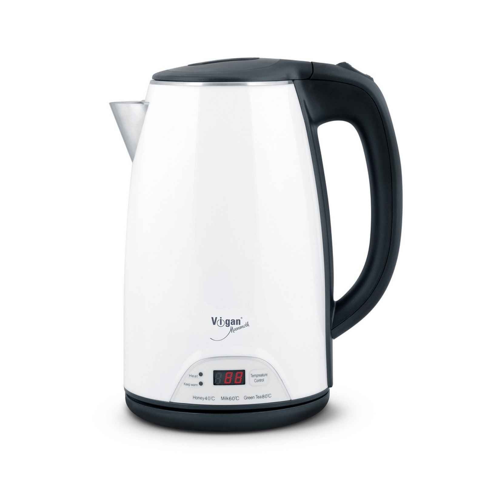 Stylová a bezpečná Jedinečná designová rychlovarná konvice Vigan Mammoth WK17DGBX vám pokaždé připraví váš oblíbený horký nápoj stylově a snadno. Díky dvouplášťovému tělu zůstává konvice vždy chladná a tak se nemusíte bát popálení při náhodném doteku. Je tedy naprosto bezpečné nechávat konvici zapnutou i v přítomnosti dětí. Díky objemu 1,7 l připravíte kávu nebo čaj pro celou rodinu naráz. Snadné používání Díky otočnému podstavci můžete konvici položit jakýmkoliv směrem. Mezi hlavní přednosti konvice...