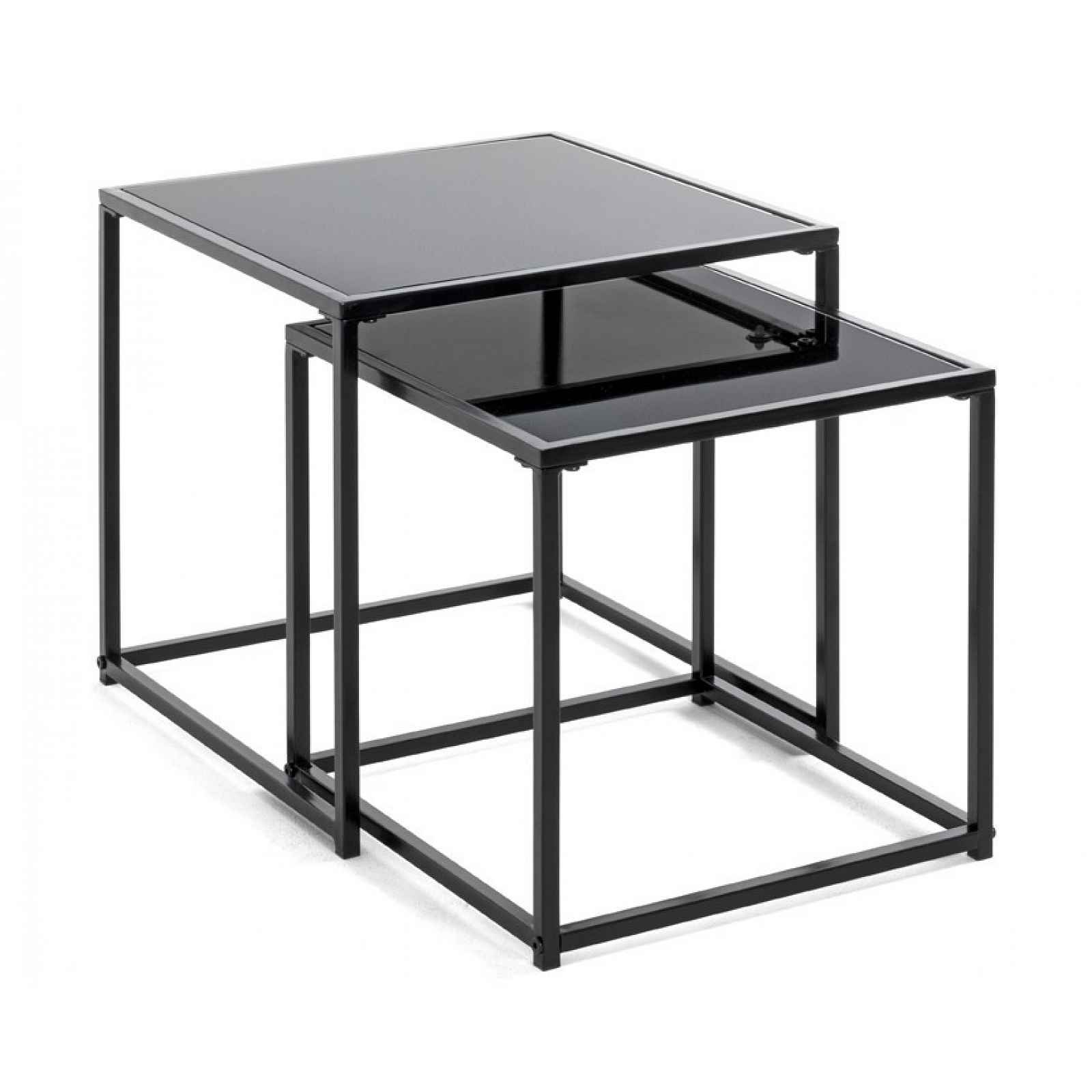 Sada 2 kusů různě velkých stolků z kombinace černého kovu a černého skla se parádně hodí k moderní sedačce. Větší a menší stolek můžete využít společně anebo je rozmíst kamkoliv do prostoru obývacího pokoje, kde prakticky poslouží třeba jako odkládací stolky na lampičku, dekorace nebo kytky. Záleží jen na vás. Menší stolek je možné zasunout pod větší a ušetřit tak prostor. - sada obsahuje: větší stolek + menší stolek - podnož/konstrukce: kov, hranatý profil - povrchová úprava: černý matný lak - horní plocha: černé tvrzené sklo - rozměry větší stolek: 40x40x40 cm - rozměry menší stolek: 35x35x35 cm - možnost zasunutí menšího stolku pod větší - moderní styl - dodáváno v demontu