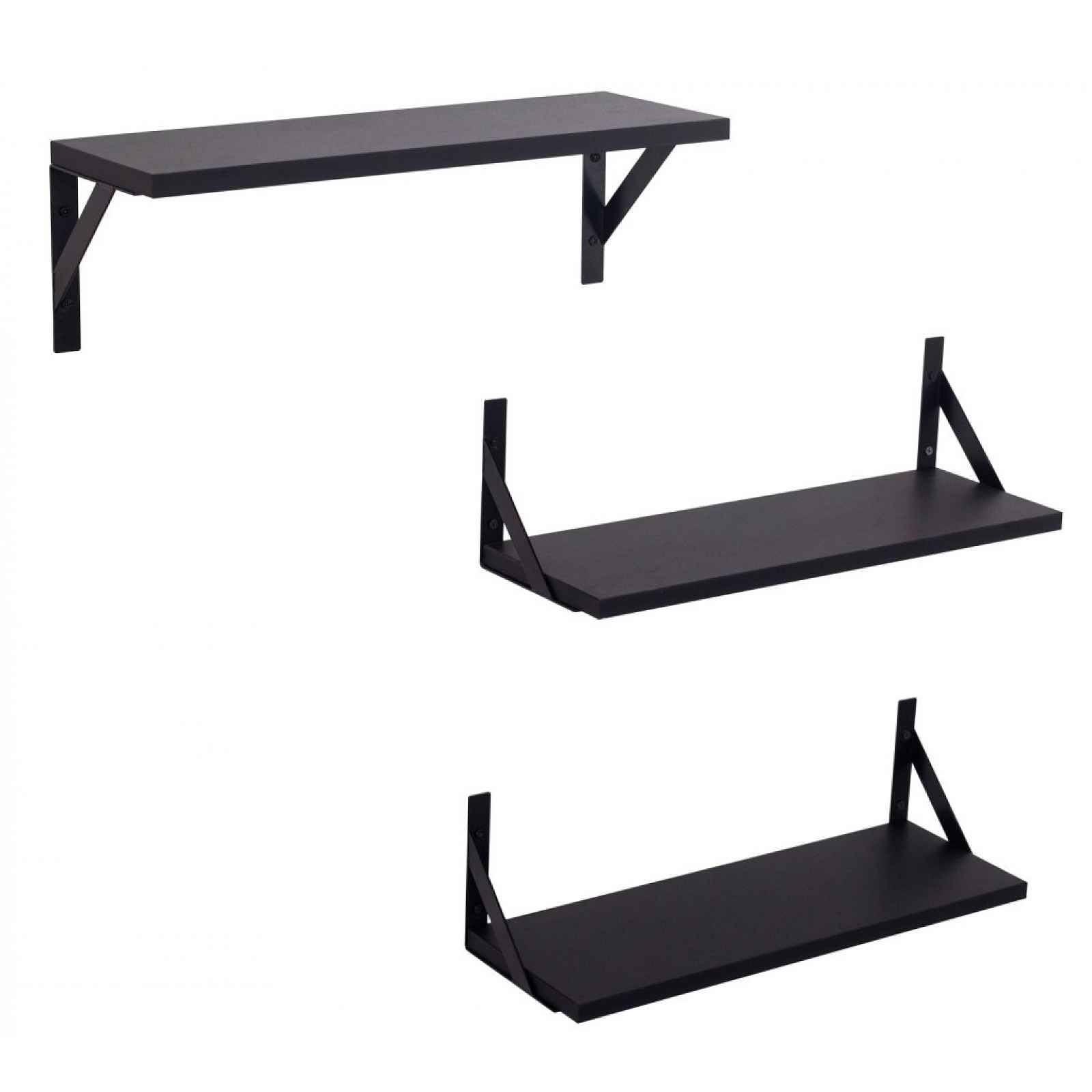 Sada 3 kusů polic o šířce 45 cm je vyrobena v černé barvě se zavěšením na černé kovové konzole. Police tak vypadají velmi moderně. Konzole lze univerzálně namontovat na horní nebo dolní stranu police. - sada obsahuje: 3 x police - materiál: MDF, kov - dekor: černá mat - boční kovová závěsná konzole (kov, černý lak, univerzální montáž konzole na horní/dolní stranu police) - plocha police: 45x15,5 cm - na dekorace, drobné předměty, nádoby s kořením, knížky, kosmetiku atd. - doporučená nosnost do 3 kg/police - pro zavěšení na stěnu (zadní 4-bodové zavěšení pomocí konzole, včetně montážního příslušenství) - dodáváno v demontu