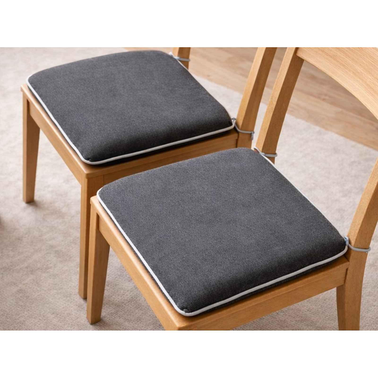 Set podsedáků o rozměru 37x37 cm v tmavě šedé barvě se světlým okrajem přináší větší pohodlí vašim jídelním židlím nebo zahradním lavicím. Set podsedáků o rozměru 37x37 cm v tmavě šedé barvě se světle šedým okrajem přináší větší pohodlí vašim jídelním židlím nebo zahradním lavicím. S těmito podsedáky zajistíte maximální komfort během každého posezení, ať už jste u večeře s rodinou nebo relaxujete venku. - sada obsahuje 2 sedací polštáře na židle - rozměr: 37x37 cm - materiál: 52% polyester/48% bavlna - barva: šedá s paspulí - upevnění: tkaničky – umožňují použití polštáře na různých typech židlí - ideální na jídelní židle, zahradní židle, lavice a křesla apod. - pouze ruční praní