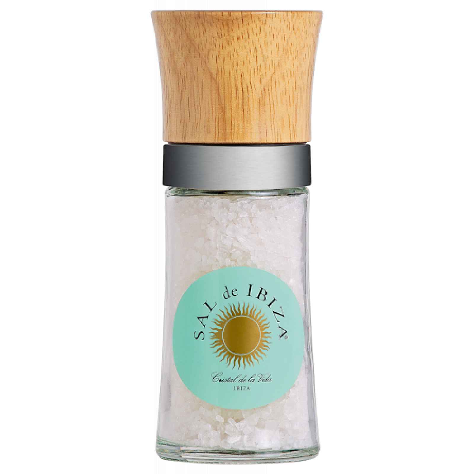 16 cm vysoký mlýnek je vyroben ze skla, s bukovým uzávěrem v přírodní úpravě. Mlýnek na vlhkou mořskou sůl je opatřen vysoce kvalitním mlecím keramickým mechanismem, který je na rozdíl od nerez oceli (i té nejkvalitnější) schopen 100 % odolat korozi, působené stálou přítomností vlhké soli. Krystalky soli padají přímo do brusného mechanismu, uvnitř mlýnku není přítomen žádný kov. Skleněné tělo je možné mýt v myčce nádobí.výška mlýnku: 16 cmprůměr mlýnku: 6 cmmateriál: sklo, keramika, dřevonáplň soli: 100 gNejhrubší mořská sůl bez jakýchkoli dalších přísad, používá se jako náplň do speciálních mlýnků na mokrou mořskou sůl Molinillo (španělsky mlýnek). dochucení již hotového jídla. Tato výjimečná sůl má jasně bílou barvu, je lehce navlhlá, a protože je v surovém stavu i přirozeně bohatá na minerály a stopové prvky, zejména selén, hořčík, fluorit a jód. 100% přírodní produkt. Mořská sůl z Ibizy, sluncem políbená. Společnost Sal de Ibiza je zaměřená na stolní produkty, vyrobené ze 100% mořské soli té nejvyšší kvality. Sůl pochází výhradně z přírodní rezervace Parc Nutural de ses Salines dÉivissa, kde solná políčka- saliny, jsou více než 2700 let stará.Sůl, získaná v salinách po odpaření vody, nepodstupuje žádný jiný proces, než pomalé sušení na slunci a následně jemné drcení – mletí ve starobylých kamenných mlýnech. Sůl Sal de Ibiza neobsahuje žádné konzervanty nebo jiné uměle přidávané látky, ani není nijak čistěna. Díky šetrnému způsobu zpracování si tak uchovává více než 80 důležitých minerálů a stopových prvků.Velké krystaly soli jsou v kamenných mlýnech tradičním způsobem semlety na požadovanou hrubost. Sal de Ibiza rozlišuje 4 stupně hrubosti:Molino: krystalky mořské soli nejvyšší hrubosti, určené do mlýnků na sůl Molinillo.Grano: hrubozrnná kuchyňská mořská sůl, vhodná např. k osolení vody na brambory, těstoviny nebo rýži.Granito: mořská sůl střední zrnitosti, nabízená v ozdobných kartonových slánkách a přítomná v kořenících směsích Granito mixes.Fina: nejjemnější kuchyňská mořská sůl, vhodná na dochucení polévek, omáček nebo třeba ryb. Produkty nabízených výjimečných stolních solí z Ibizy jsou rozděleny do několika řad:Fleur de Sel (Solný květ) nemá v kuchyni konkurenci, dokáže zvýraznit chuť, aniž by pokrm přesolila. Sůl je dodávána v keramických nádobkách s korkovým víkem.Granito pure a Granito Family je řada krystalicky čistých stolních solí a solných směsí (mořská sůl v kombinaci s jiným kořením či bylinkami), dodávána v kartonových dózičkách – slánkách. Granito Ceramic edition nabízí jemnou mořskou sůl a kambodžský pepř v keramických slánkách.Fina & Grano 1000 g má 2 představitele – kilové balení jemné a hrubé mořské soli do kuchyně.Řada Molinillo & Molino nabízí mlýnky na sůl a náplně do nich.