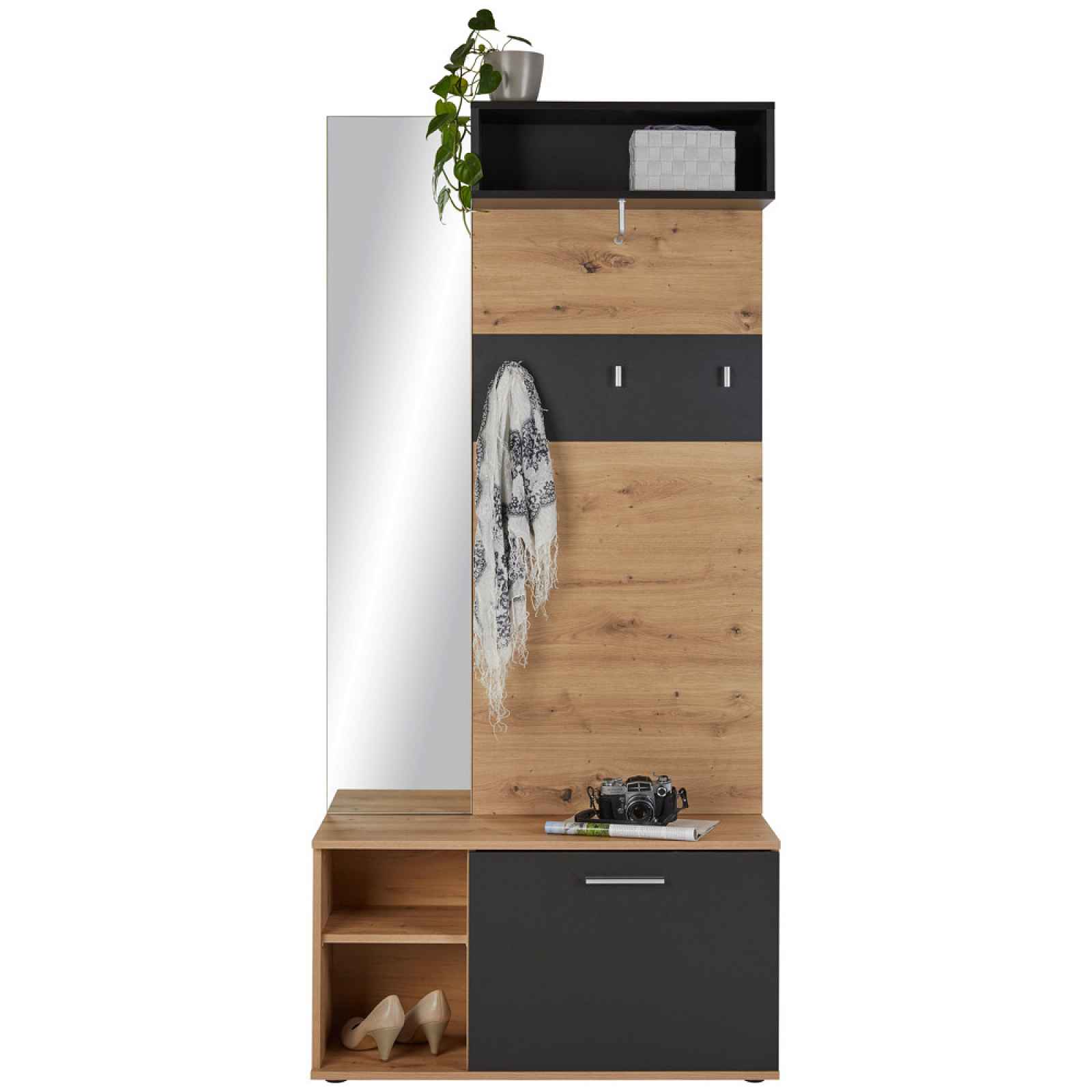 Předsíňová stěna AMI 32 Se zrcadlem Dub artisan + černá Modrá