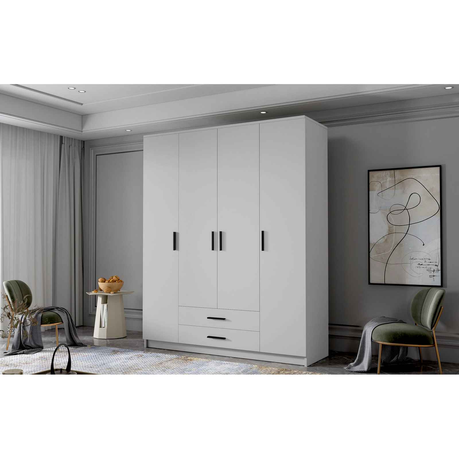 Šatní skříň ADA I 160 cm - bílá/černé úchytky. Šatní skříň kombinuje klasickou jednoduchost a moderní design. Je ideální jako šatní skříň do předsíně nebo místo pro uložení oblečení v ložnici nebo jiných drobností každodenní potřeby. - použití kvalitních materiálů - zajímavé provedení - snadná montáž - zajímavé úchytky Údržba: Povrch nábytku utřete do čista měkkým hadříkem. Vyhněte se použití chemikálií.