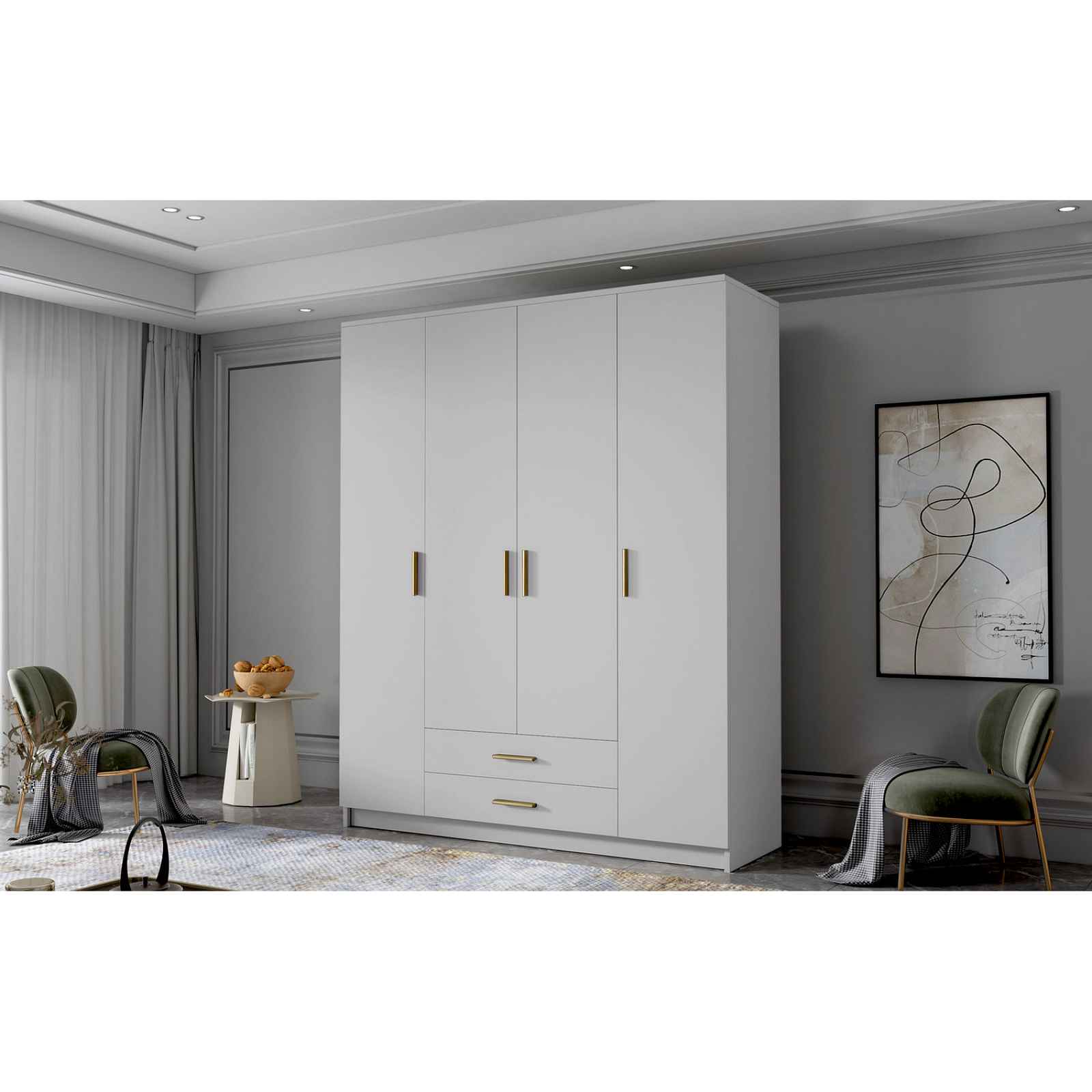Šatní skříň ADA I 160 cm - bílá/zlaté úchytky. Šatní skříň kombinuje klasickou jednoduchost a moderní design. Je ideální jako šatní skříň do předsíně nebo místo pro uložení oblečení v ložnici nebo jiných drobností každodenní potřeby. - použití kvalitních materiálů - zajímavé provedení - snadná montáž - zajímavé úchytky Údržba: Povrch nábytku utřete do čista měkkým hadříkem. Vyhněte se použití chemikálií.