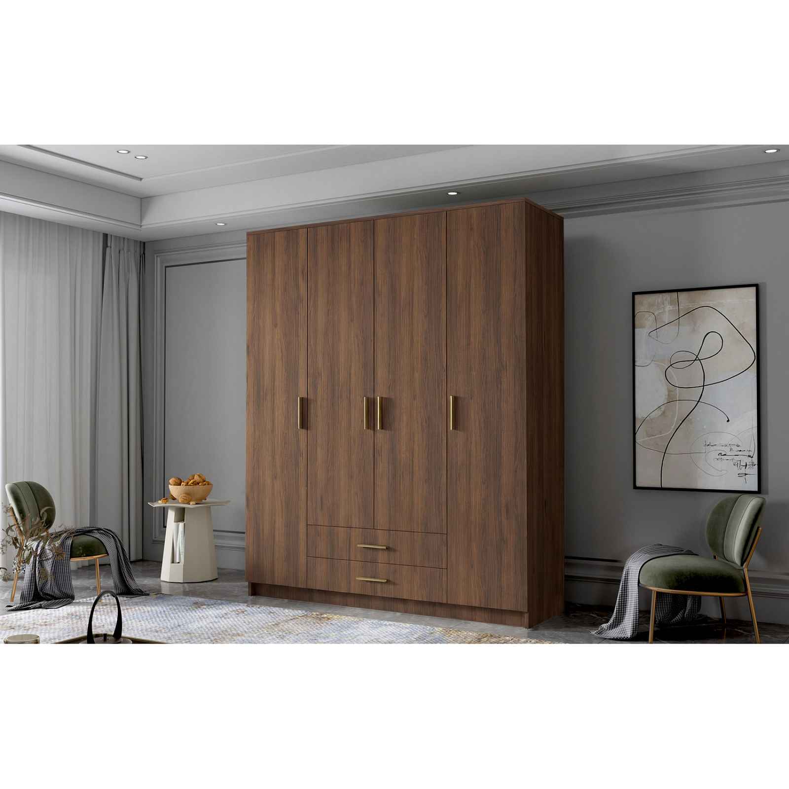 Šatní skříň ADA I 160 cm - ořech/zlaté úchytky. Šatní skříň kombinuje klasickou jednoduchost a moderní design. Je ideální jako šatní skříň do předsíně nebo místo pro uložení oblečení v ložnici nebo jiných drobností každodenní potřeby. - použití kvalitních materiálů - zajímavé provedení - snadná montáž - zajímavé úchytky Údržba: Povrch nábytku utřete do čista měkkým hadříkem. Vyhněte se použití chemikálií.