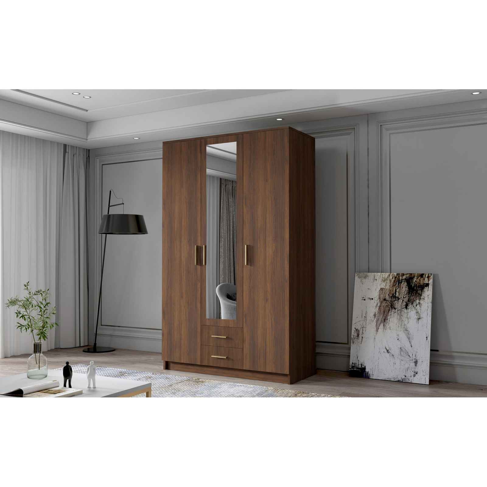 Šatní skříň ADA II 120 cm - ořech/zlaté úchytky. Šatní skříň kombinuje klasickou jednoduchost a moderní design. Je ideální jako šatní skříň do předsíně nebo místo pro uložení oblečení v ložnici nebo jiných drobností každodenní potřeby. - použití kvalitních materiálů - zajímavé provedení - snadná montáž - zajímavé úchytky Údržba: Povrch nábytku utřete do čista měkkým hadříkem. Vyhněte se použití chemikálií.