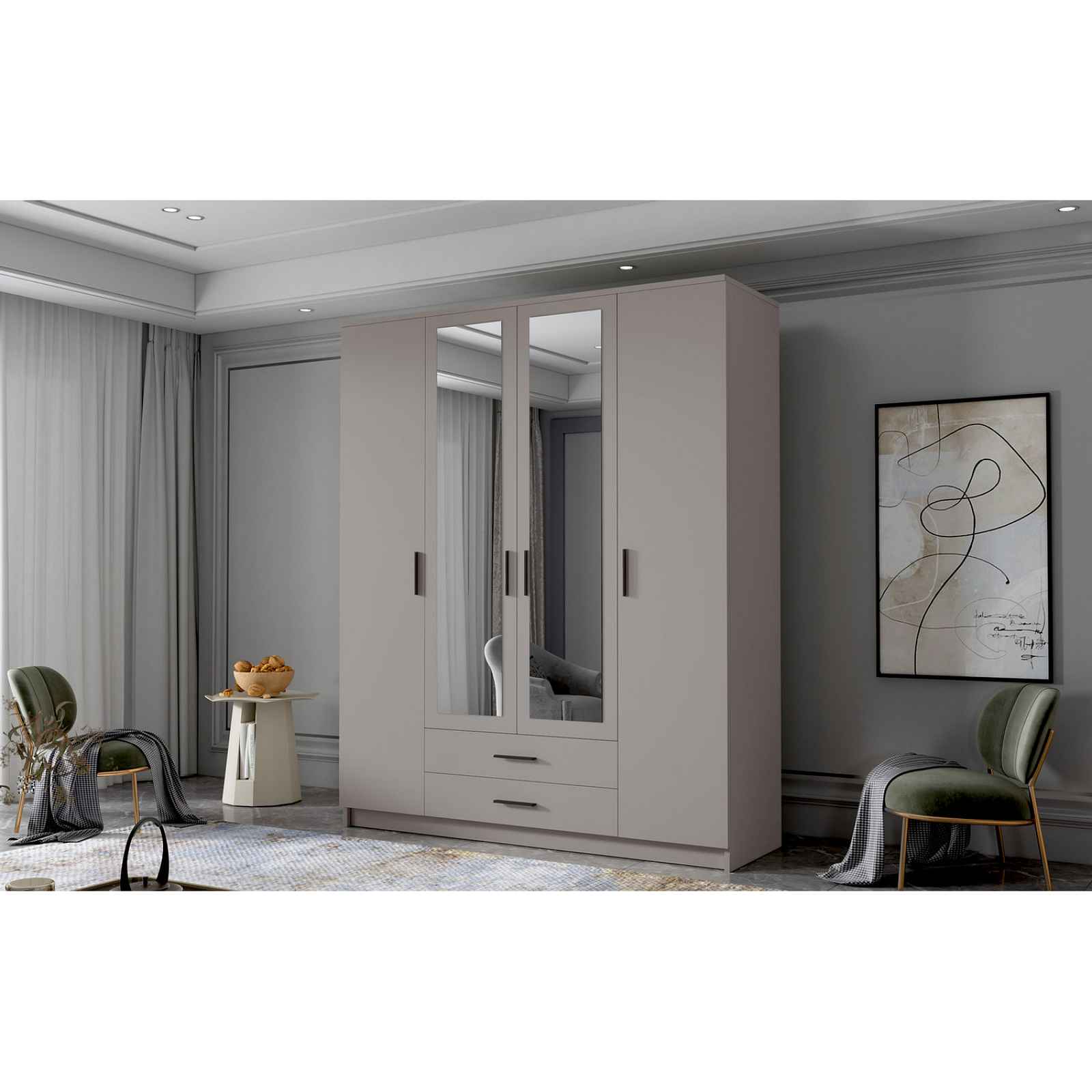 Šatní skříň ADA II 160 cm - béžová/černé úchytky. Šatní skříň kombinuje klasickou jednoduchost a moderní design. Je ideální jako šatní skříň do předsíně nebo místo pro uložení oblečení v ložnici nebo jiných drobností každodenní potřeby. - použití kvalitních materiálů - zajímavé provedení - snadná montáž - zajímavé úchytky Údržba: Povrch nábytku utřete do čista měkkým hadříkem. Vyhněte se použití chemikálií.