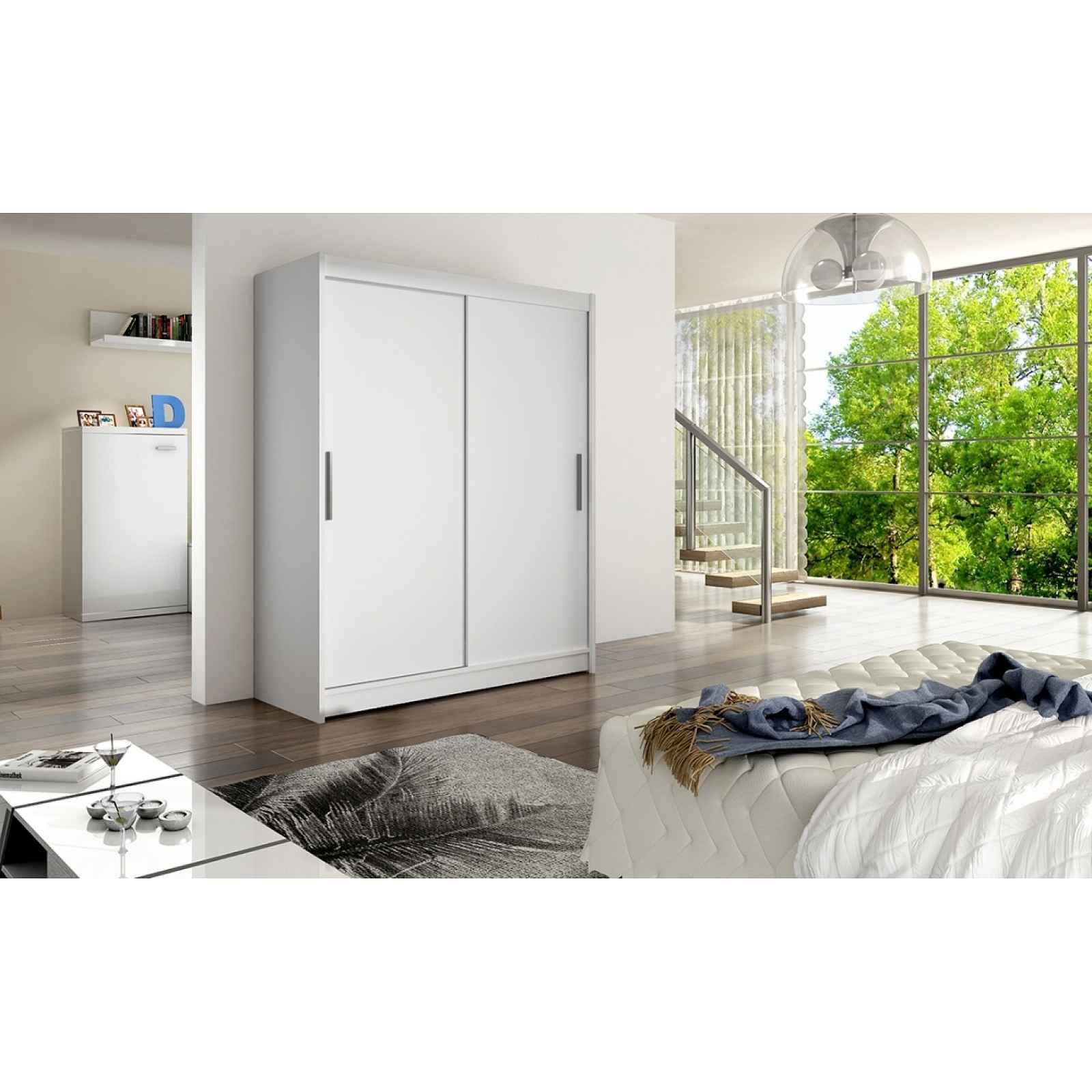 Klasická šatní skříň s posuvnými dveřmi v neutrálním bílém provedení Barva: bílý mat Rozměry (šxhxv): 150 x 58 x 200 cm Materiál: - laminovaná deska o tloušťce 16 mm, hrany ABS - hliníkové kolejnice Sevroll Dodání v demontu. Záruka 24 měsíců.