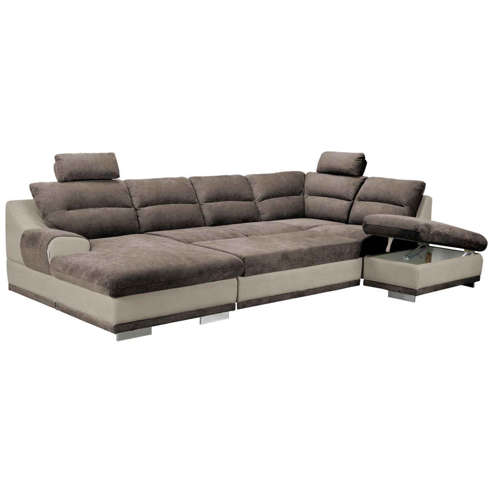 Rozkládací sedací souprava POLARIS NEW, úložný prostor, látka hnědá
