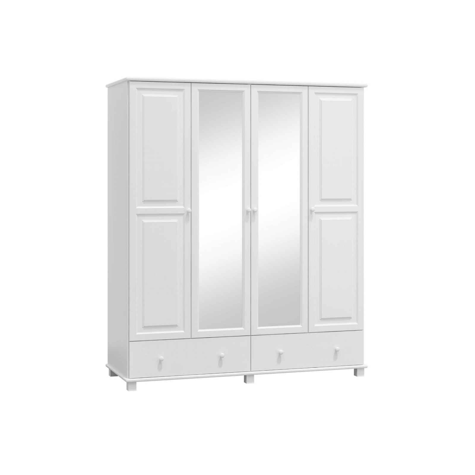 Kombinovaná šatní skříň se zrcadlem Materiál: masiv borovice, tloušťka 2,6 cm Barva moření: bílá Rozměry (výška x šířka x hloubka): 190 x 160 x 60 cm Dodáváno v demontu.