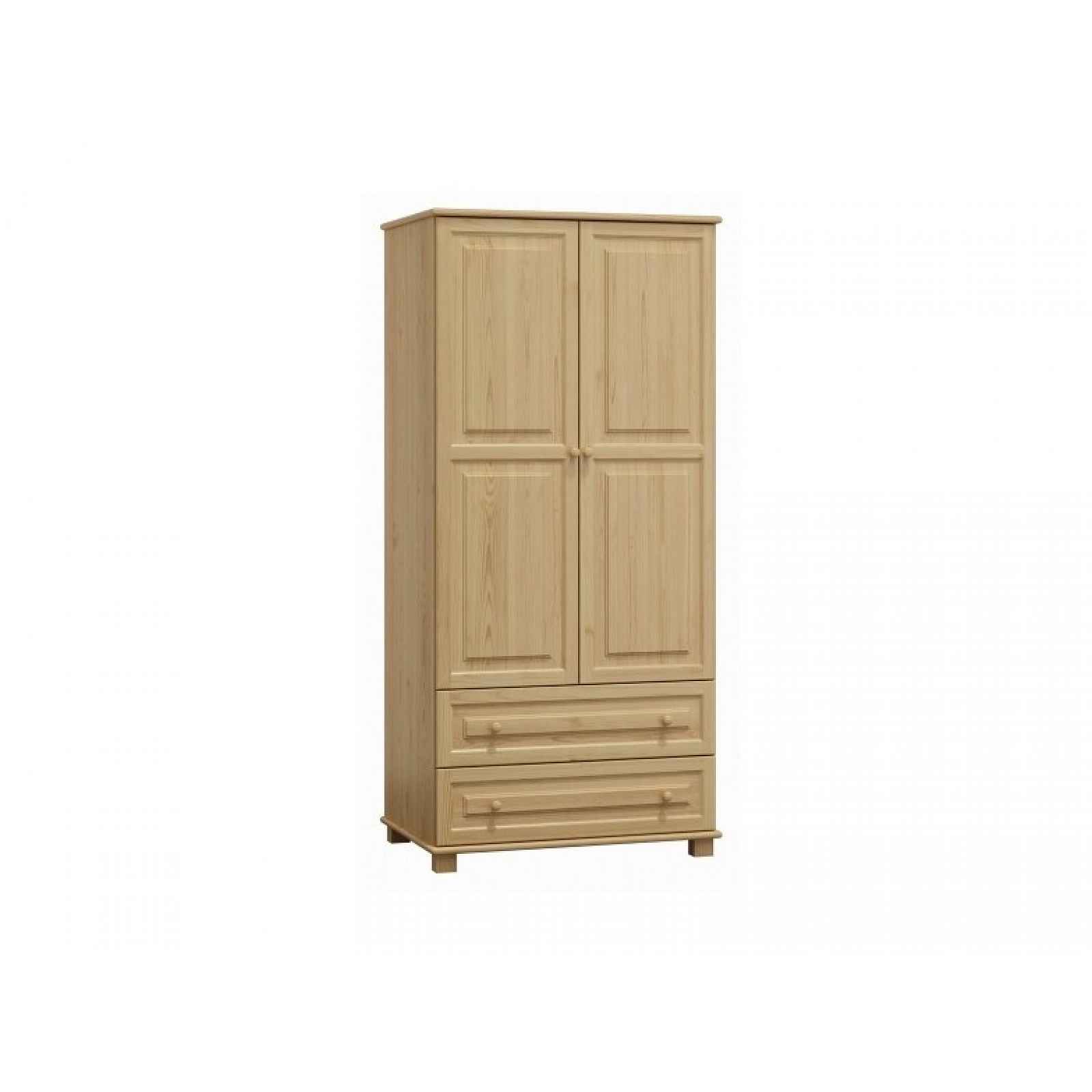 Kombinovaná šatní skříň se dvěma zásuvkami Materiál: masiv borovice, tloušťka 2,6 cm Rozměry (výška x šířka x hloubka): 190 x 90 x 60 cm Dodáváno v demontu.