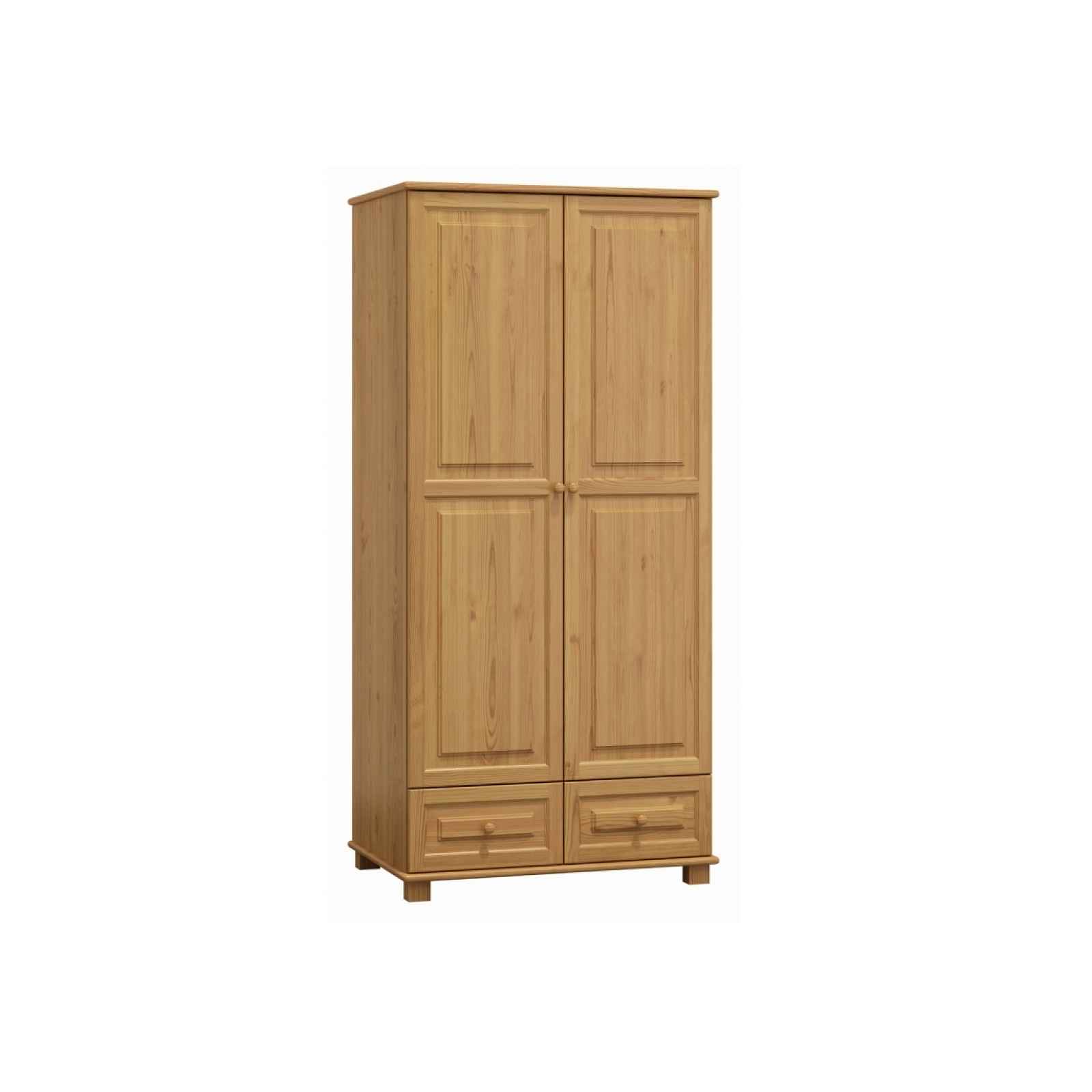Kombinovaná šatní skříň se dvěma šuplíky Materiál: masiv borovice, tloušťka 2,6 cm Barva moření: olše Rozměry (výška x šířka x hloubka): 190 x 80 x 60 cm Dodáváno v demontu.