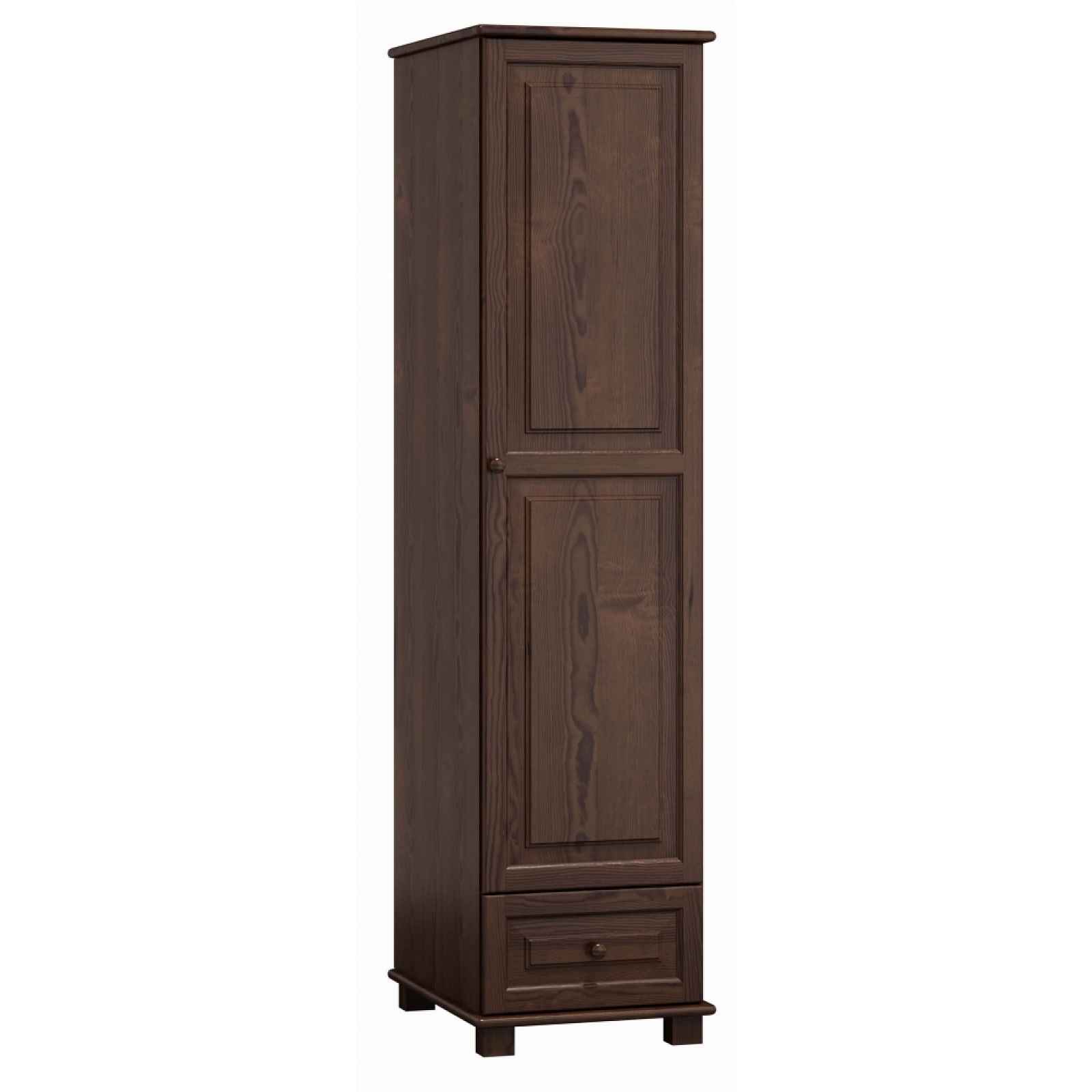 Policová skříň s jednou zásuvkou Materiál: masiv borovice, tloušťka 2,6 cm Barva moření: ořech Rozměry (výška x šířka x hloubka): 190 x 47 x 60 cm Dodáváno v demontu.
