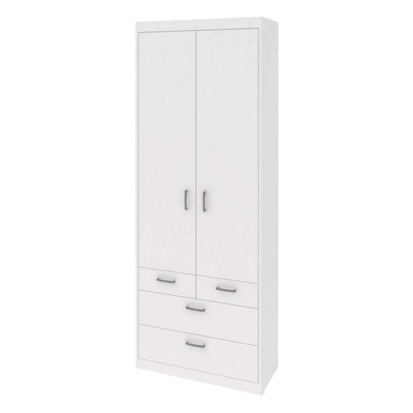 Skříň se zásuvkami z programu Mega v bílém dekoru - variabilní program nábytku Mega je zcela univerzální a vhodný pro zařízení každé místnosti. Kombinujte mezi sebou jednotlivé díly a vytvořte si tak doma prostředí podle své vlastní fantazie, potřeb a prostorových možností. - skříň se zásuvkami z programu Mega - materiál: laminovaná dřevotříska 16 mm - oblé přední hrany korpusu - dekor: bílý mat - úchyt: zaoblený profil, šedá alu barva - celková šířka skříně: 72 cm - 4 x zásuvka (kovové boční pojezdy, doporučená nosnost do 6 kg) - 2 x otočné dveře - členění vnitřního prostoru: 1 x vnitřní blok - vnitřní blok: otevřený úložný prostor, 4 x police - lze kombinovat i s dalšími díly variabilního programu Mega - vyrobeno na Slovensku - kvalitní zpracování - dodáváno v demontu