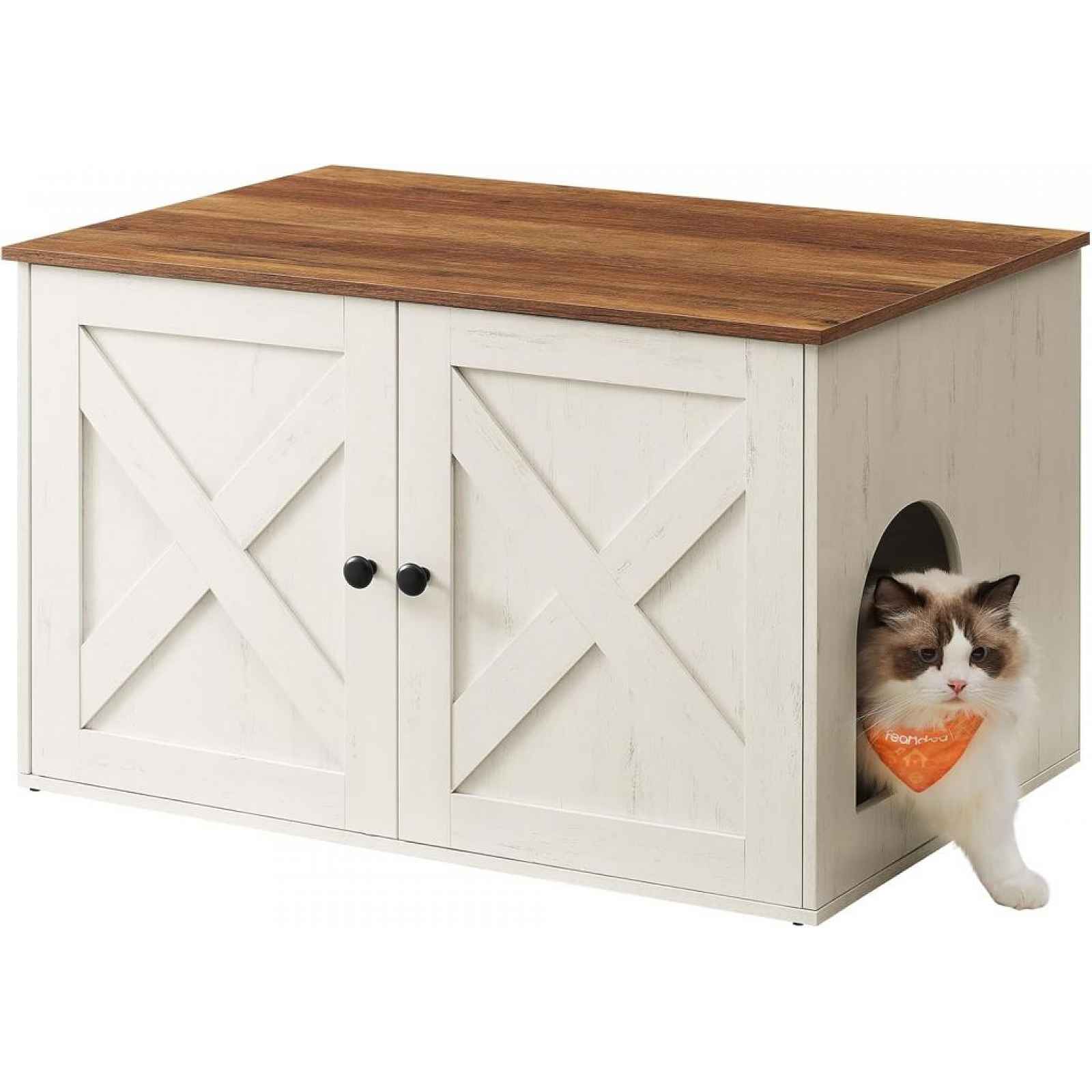 Dopřejte své kočce soukromí a sobě krásný interiér. Tato skříňka na kočičí WC v bílo-hnědém provedení se stane stylovým doplňkem každé domácnosti. Vaše kočka získá klidné místo a vy už nebudete muset řešit pohled na nevzhlednou toaletu. Odolná MDF a dřevotříska zaručují stabilitu a dlouhou životnost. Snadná údržba a rychlá montáž díky přehlednému návodu. Vnitřní prostor lze přizpůsobit velikosti toalety nebo využít jako pelíšek. TOP 5 klíčových výhod Rustikální vzhled – Vkusně doplní váš domov. Snadná údržba – Povrch stačí otřít hadříkem. Soukromí pro kočku – Klidné místo pro potřebu. Rychlá montáž – Hotovo za 20 minut. Univerzální využití – Lze použít i jako pelíšek. Technické údaje Barva: Bílá, hnědá Materiál: MDF, dřevotříska Rozměry: 80 x 53 x 50 cm Hmotnost: 15,9 kg Nosnost horní desky (s přepážkou): 60 kg Nosnost horní desky (bez přepážky): 10 kg Nosnost dna: 30 kg Obsah balení Skříňka na kočičí WC: 1 ks Příslušenství k montáži: 1 sada Dopřejte své kočce i sobě pohodlí a krásu domova.