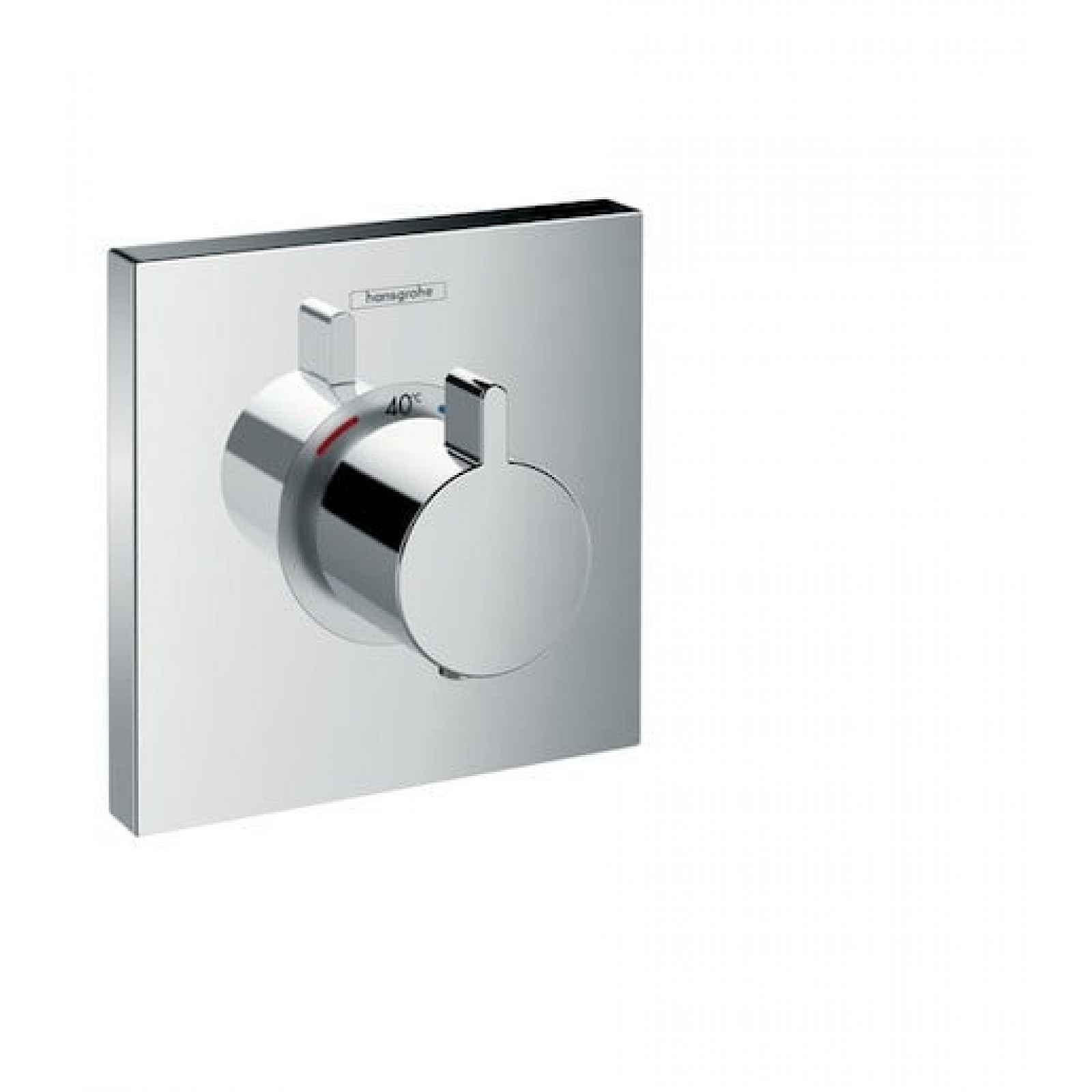 Termostatická podomítková baterie bez podomítkového tělesa. V hranatém designu. V chromovém provedení. Průtok baterie je 42 litrů/minutu.