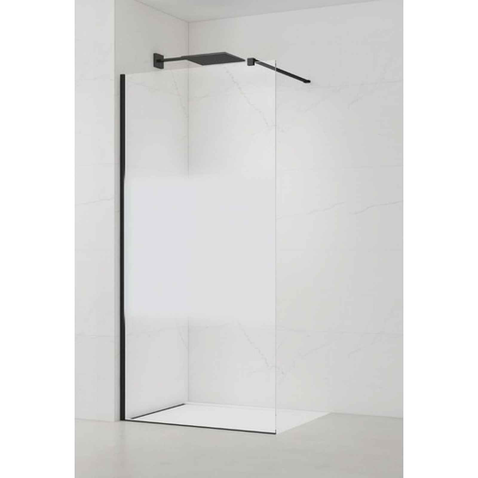 Sprchová zástěna walk-in s profily a zavětrováním v černé barvě, výplň je z čirého skla, dekor výplně je s intim pásem. Produkt je opatřen povrchovou úpravou Easy Clean, která usnadňuje čistění a minimalizuje usazování vodního kamene. Nelze otevřít - pevný systém. Určení - levá i pravá orientace.