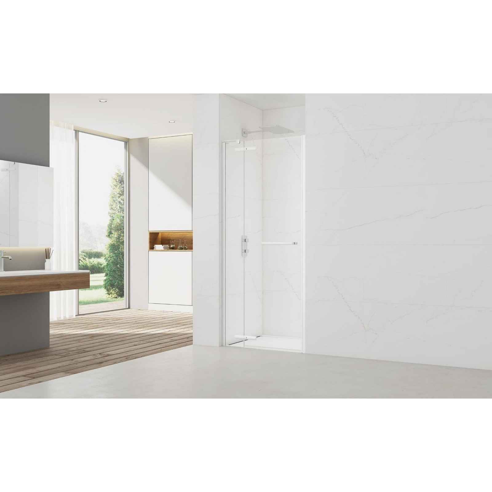 Sprchové dveře včetně nikového profilu bílá, výplň je z čirého skla bez dekoru. Produkt je opatřen povrchovou úpravou Easy Clean, která usnadňuje čistění a minimalizuje usazování vodního kamene. Pantový systém otevírání. Určení - levá i pravá orientace.