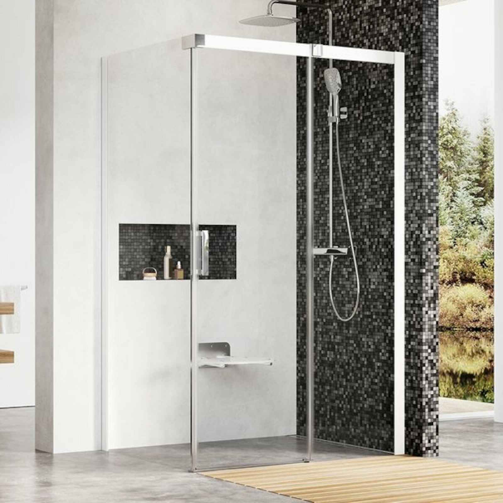 Sprchový kout bez vaničky s profilem v bílé barvě a výplní z čirého skla s dekorem transparent. S technologií RAVAK AntiCalc® dodává sklu hydrofobní účinky, to znamená, že povrch skla se stane vodoodpudivým. Posuvný systém otevírání. Pravá orientace.