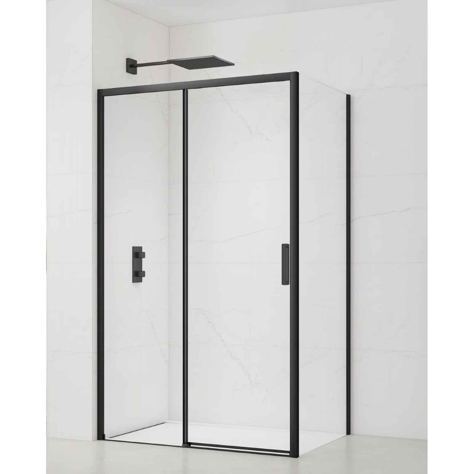 Sprchový kout bez vaničky a barvou profilů v černé barvě, výplň je z čirého skla bez dekoru. Produkt je opatřen povrchovou úpravou Easy Clean, která usnadňuje čistění a minimalizuje usazování vodního kamene. Posuvný systém otevírání. Určení - levá i pravá orientace.