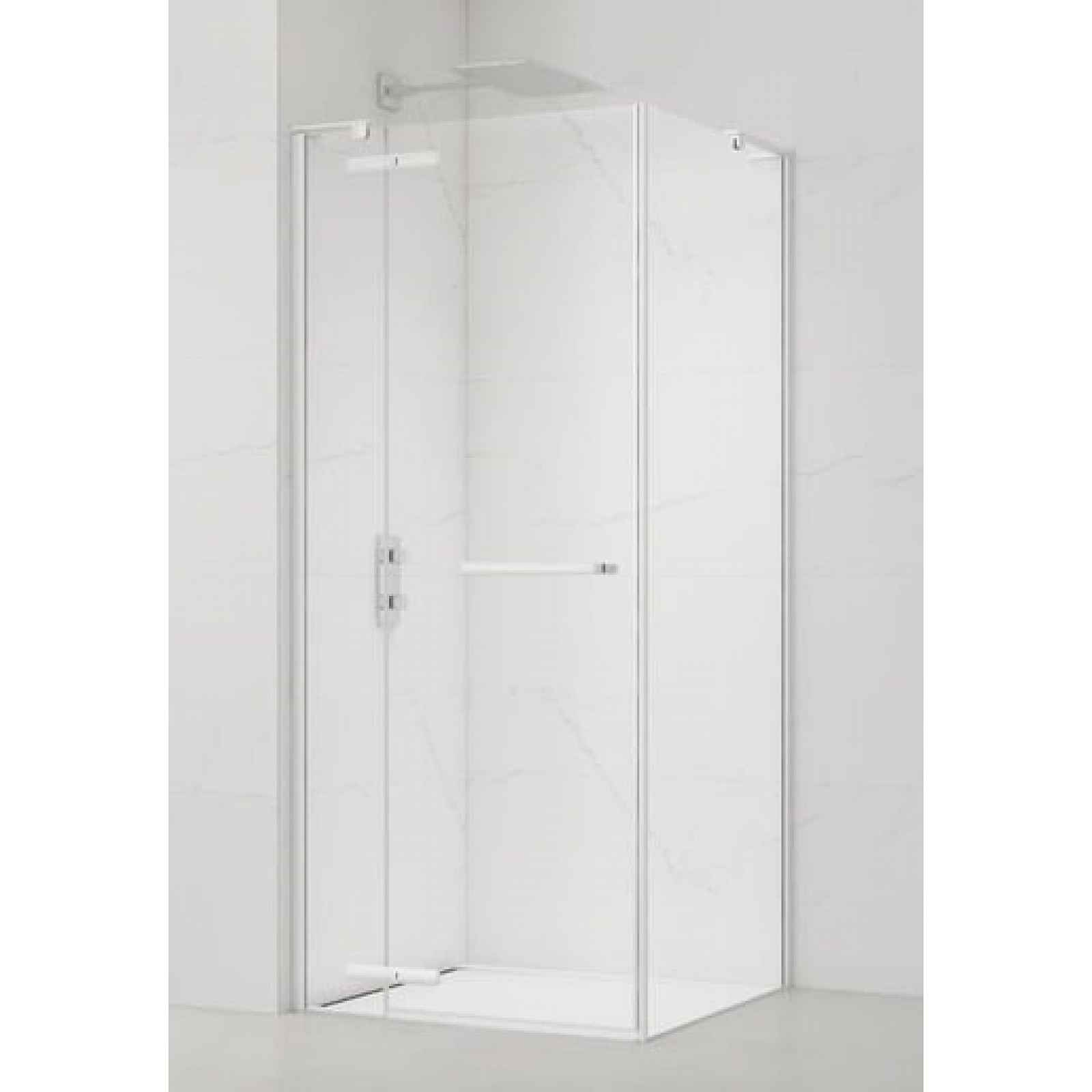 Sprchový kout včetně boční zástěny bílá, výplň je z čirého skla bez dekoru. Produkt je opatřen povrchovou úpravou Easy Clean, která usnadňuje čistění a minimalizuje usazování vodního kamene. Pantový systém otevírání. Určení - levá i pravá orientace.