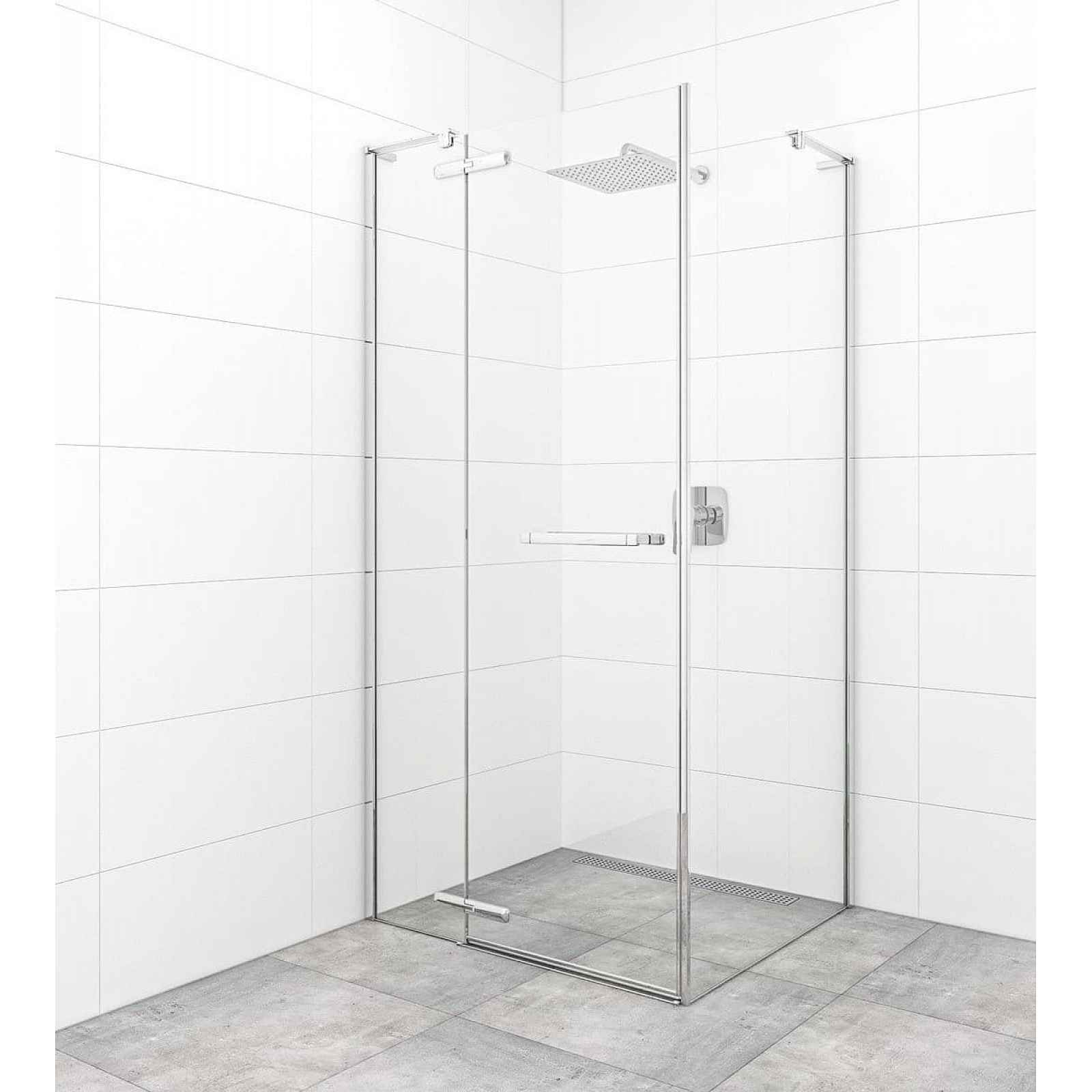 Sprchový kout bez vaničky a barvou profilů v lesklém chromu, výplň je z čirého skla bez dekoru. Produkt je opatřen povrchovou úpravou Easy Clean, která usnadňuje čistění a minimalizuje usazování vodního kamene. Otočný systém otevírání. Určení - levá i pravá orientace.
