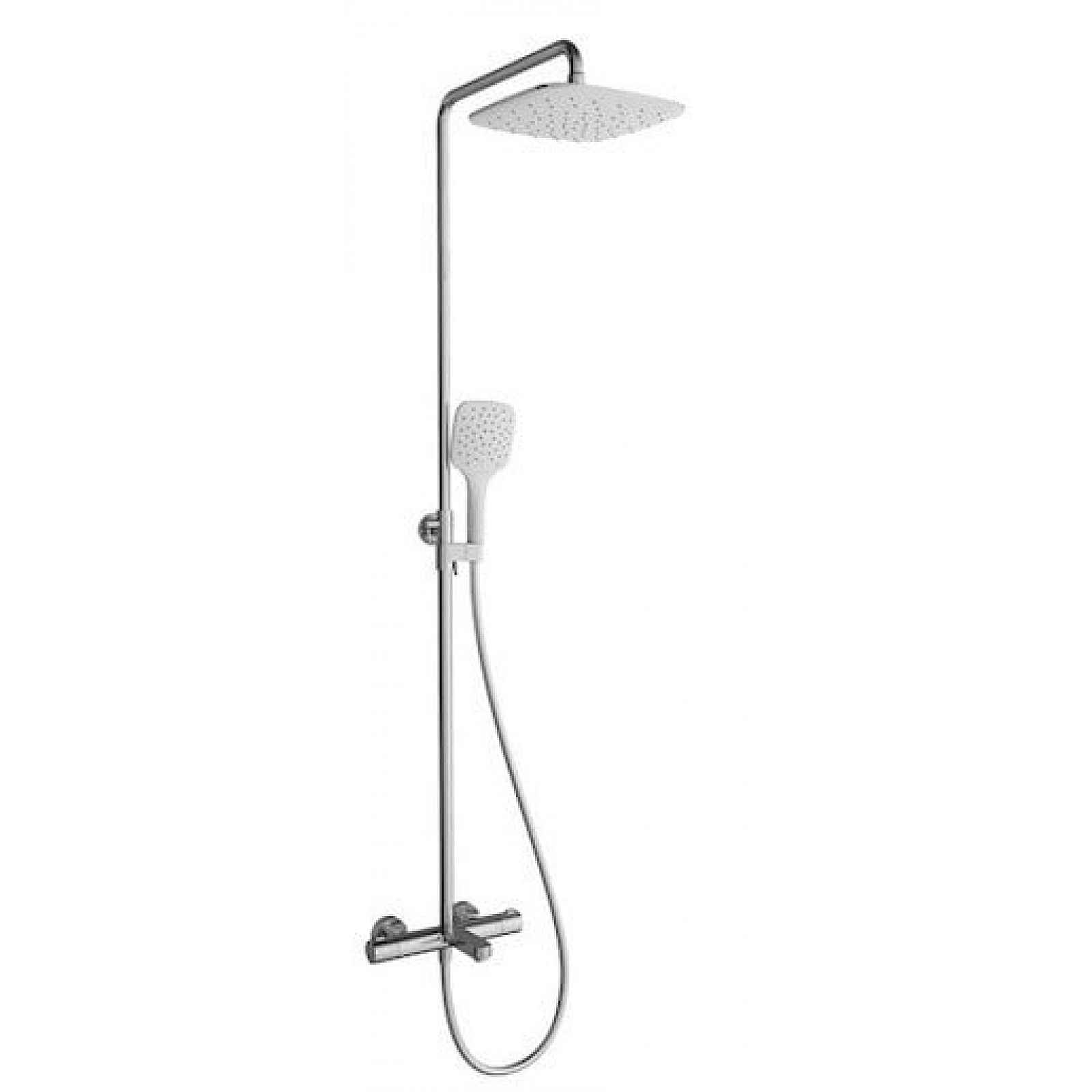 Sprchový systém s nástěnnou baterií s termostatickou baterií se 3 funkcemi s průměrem 25cm. Rozteč baterie je 150 mm. V oblém designu.
