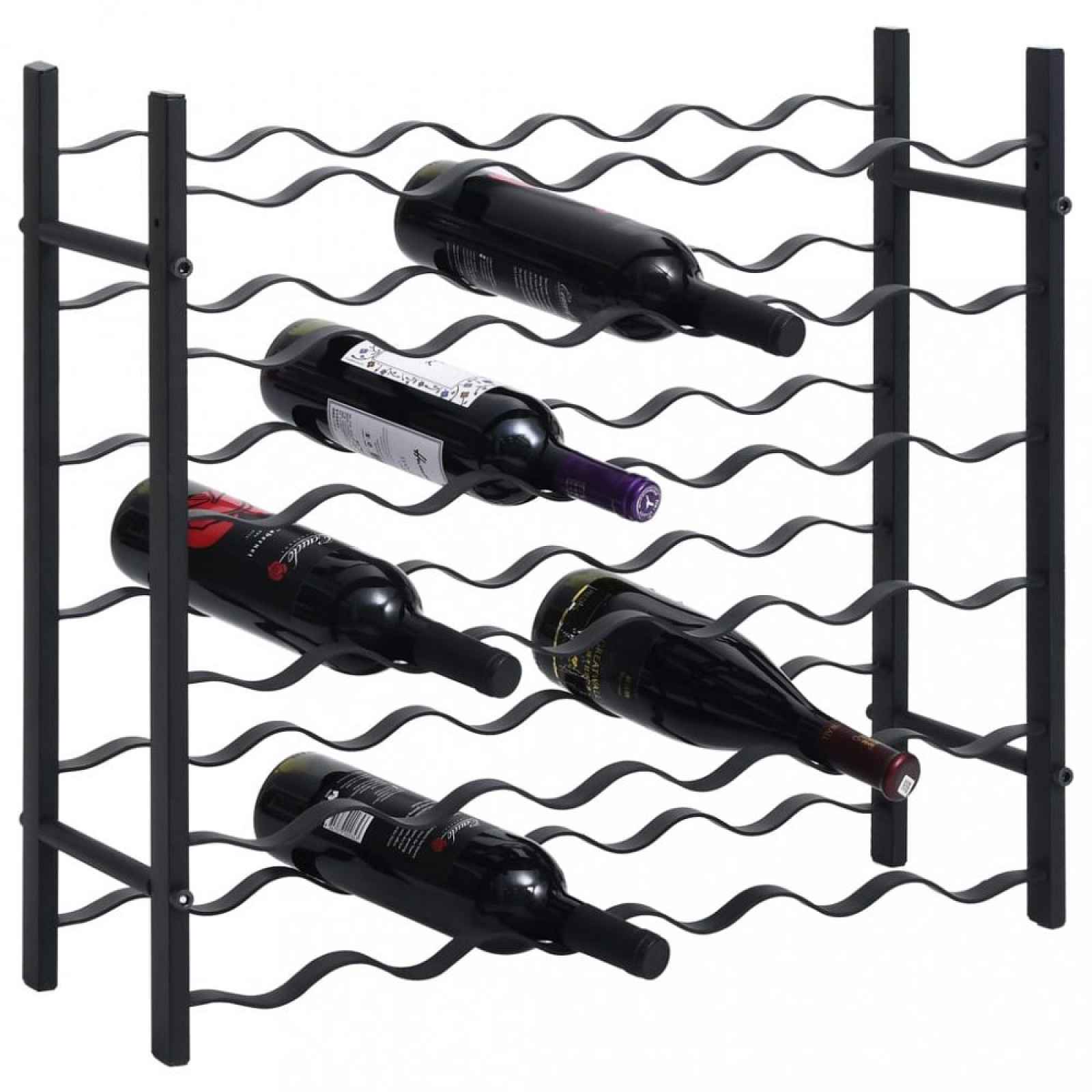 Tento regál na víno lze použít nejen k ukládání a vystavování vašich vín, ale zapůsobí také jako půvabná dekorace do vašeho domova. Držák na víno pojme až 36 lahví vína. Jeho jednoduchý a úhledný design vnese do vaší domácnosti industriální šarm. Výborně se také hodí jako dárek pro přátele či známé, kteří milují víno. Jelikož je vyrobený z robustního železa, je náš stojan na láhve mimořádně stabilní a odolný. Vezměte prosím na vědomí, že láhve vína nejsou součástí dodávky. Barva: černáMateriál:kov s práškovým nástřikemRozměry:šířka: 64 4 cm hloubka: 22 cm výška: 58,5 cm Hmotnost:6,4 kgDodáváno v demontu.