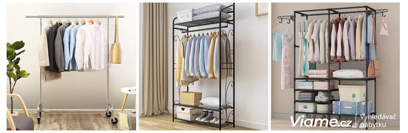 Na trhu najdeme stojany v různých typech provedení. Oblíbené jsou šatní stojany s poličkami, na kterých můžete oblečení přehledně organizovat. Na dolní polici je možné umístit boty, po bokách například kabelky či čepice.
