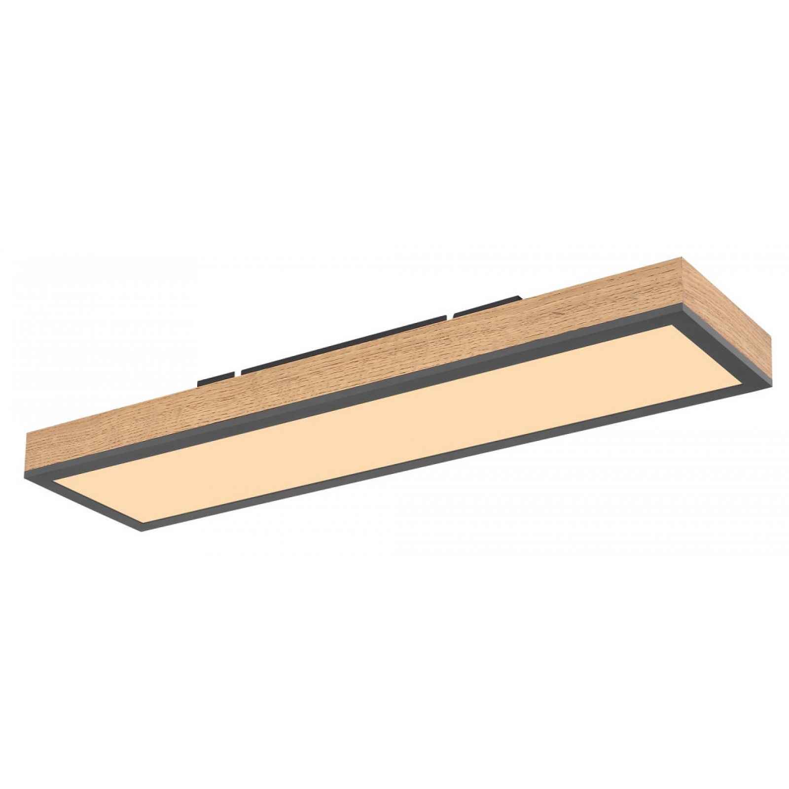 Stropní osvětlení ze série Doro vyniká svým krásným designem v optice dřeva a jednoduchým tvarem. 60 cm dlouhé obdélníkové stropní svítidlo má integrovanou LED žárovku, která vyzařuje příjemné teplé bílé světlo. Díky barevné kombinaci grafitu a vzhledu dřeva vytváří krásný celkový obraz. - konstrukce: hliník - povrchová úprava: grafit - základna: hranatá - stínidlo: akryl opálový - rám v dubovém vzhledu (MDF) - rozměr: 60x6x15 cm - počet svítidel: 1 - typ patice: LED SMD - max. výkon: 1 × 18 W - žárovky: včetně 1 x LED 18 W, 230V - barva světla: teplá bílá (3000 kelvin) - světelný tok: 1920lm zdroj, 1000lm výstup - energeticky úsporné - stupeň krytí IP: IP20 - třída ochrany: 1 - druh osvětlení: stropní - styl: moderní - dodáváno v demontu