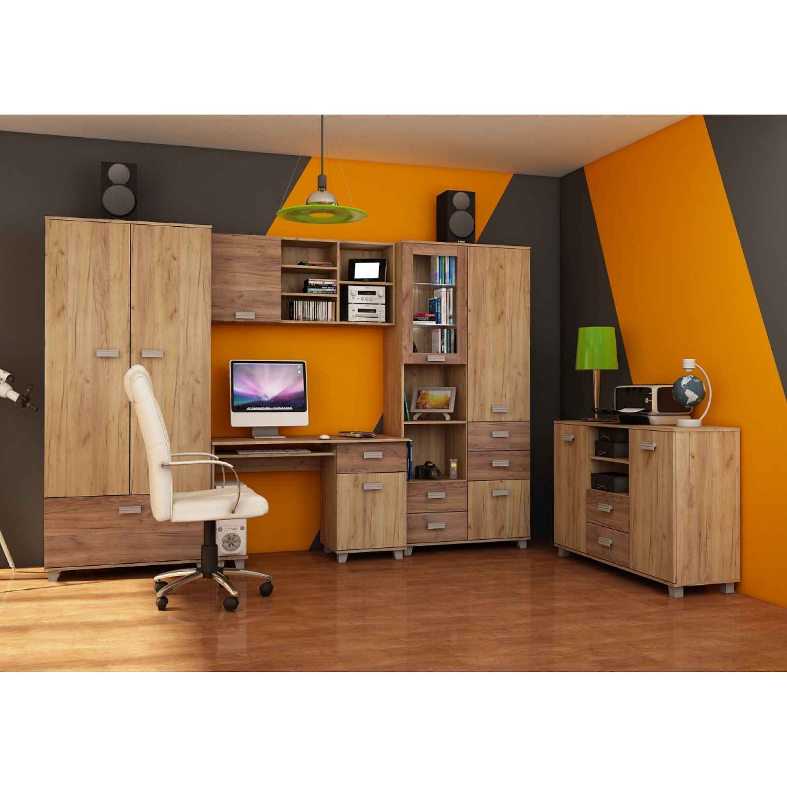 Studentský pokoj Barva: craft zlatý/craft tobaco Materiál: lamino 16 mm Součástí sestavy je (rozměry šxvxhl): * psací stůl (120 x 75 x 55 cm) * police (120 x 53 x 31 cm) * regál (90 x 200 x 42 cm) * skříň (80 x 200 x 54 cm) Komoda není zahrnuta v ceně, je možné ji dokoupit viz přílušenství. Dodává se v demontu. Záruka 5 let.