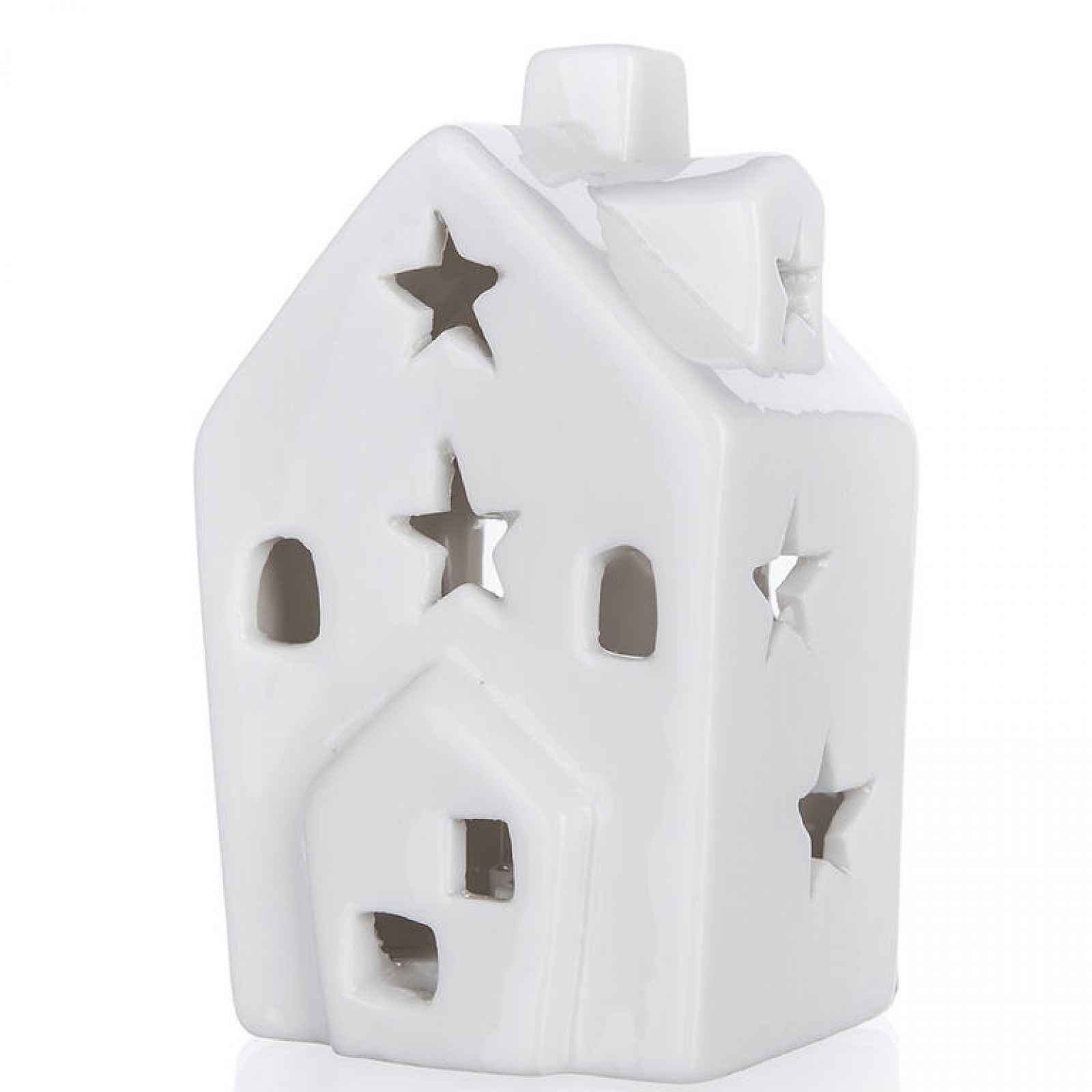 Svíticí dekorace pro sváteční pohodu Svítící dekorace v podobě domečku s LED bílým světlem je to pravé doplnění vaší sváteční pohody. Domeček je vyroben z bílého porcelánu a hodí se do každého interiéru. Mihotavé světlo napodobuje světlo hořící svíčky a vytváří příjemnou atmosféru. Obsahuje baterie a LED žárovku. Materiál: porcelán Rozměry: v. 10 x š. 6 x d. 6 cm