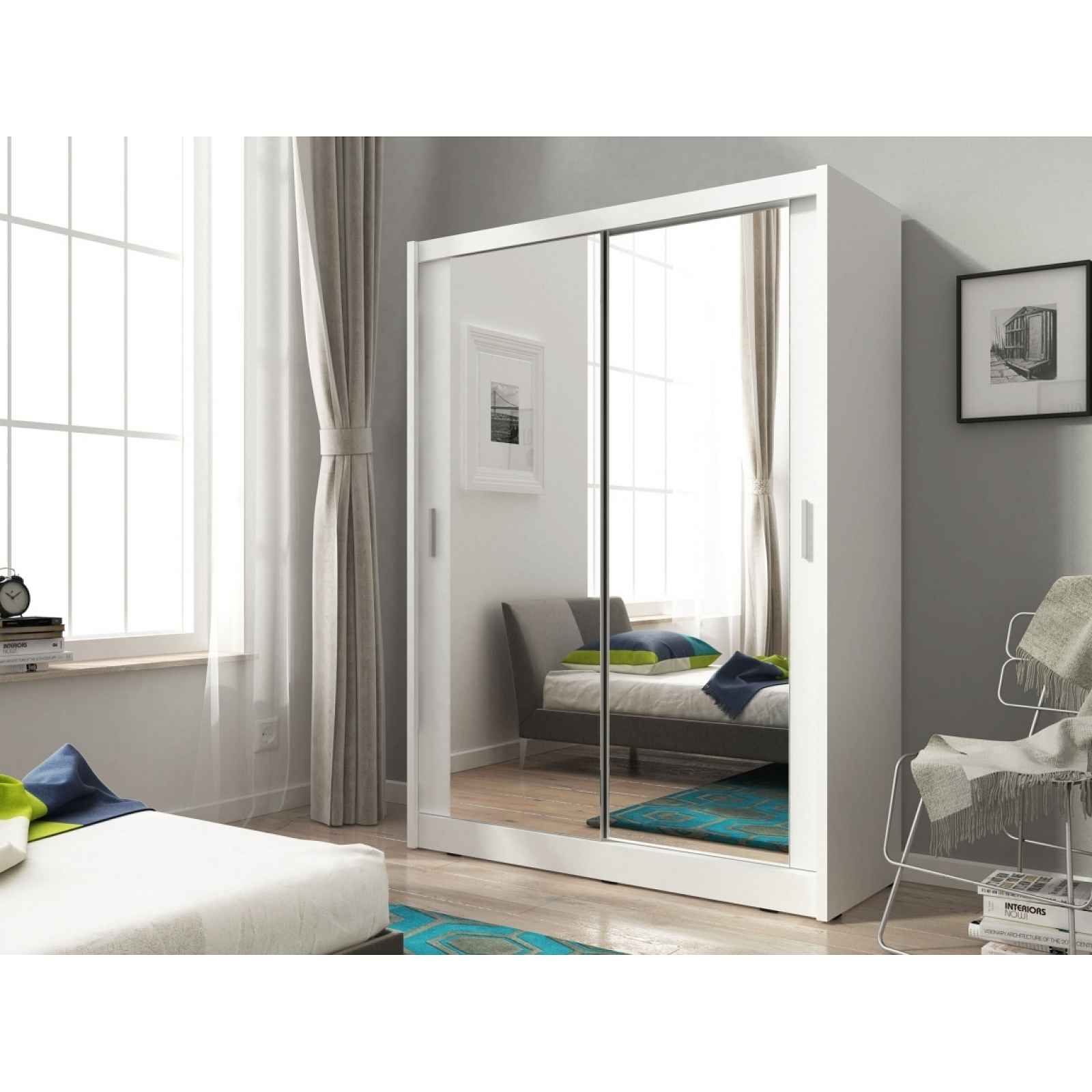 Kombinovaná skříň se zrcadlem a posuvnými dveřmiSkříň je obsahuje 4 police a šatní tyč. Foto vnitřních prostor v jiné barvě. Barva: bílá Rozměr (šxvxh): 150 x 200 x 62 cm Materiál: - lamino, ABS hrany - lišta MDF - 2x zrcadlo Dodáváno v demontu. Záruka 24 měsíců.
