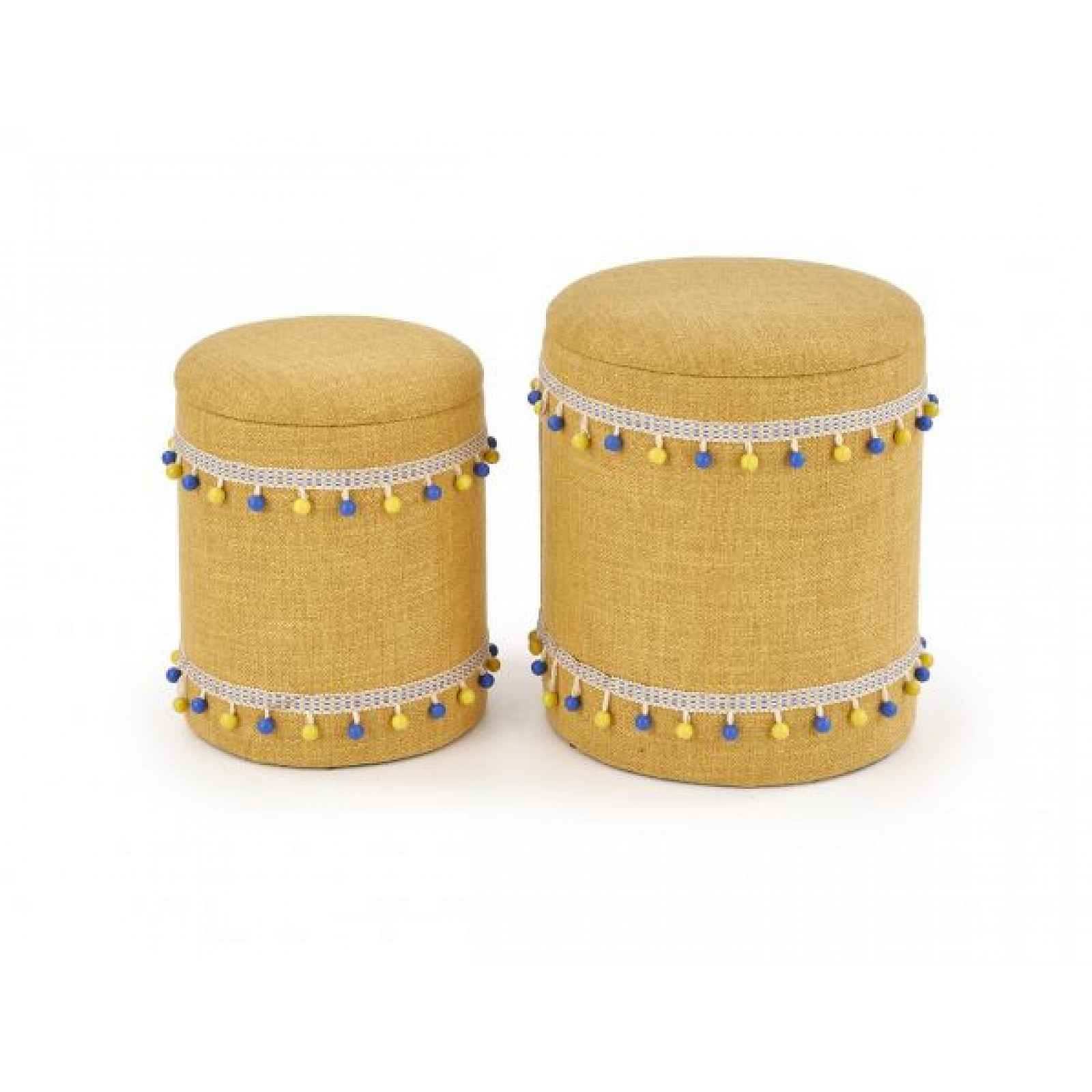 Set dvou taburetů GRADO je vhodný do obývacího pokoje, předsíně nebo i do dětského či studnetského pokoje. Taburety jsou celočalouněné příjemnou látkou ve dvou barevných variantách: žlutá a světle modrá. Taburety mají zdobné lemování a disponují praktickým úložným prostorem. Barva:žlutásvětle modráVýběr barvy zvolte ve variantě produktu. Pokud Vámi vybraná varianta není ve výběru, je dočasně nedostupná.Materiál:látka Rozměry:šířka: 30 / 38 cmhloubka: 30 / 38 cmvýška: 37 / 40 cmDodáváno v demontu.