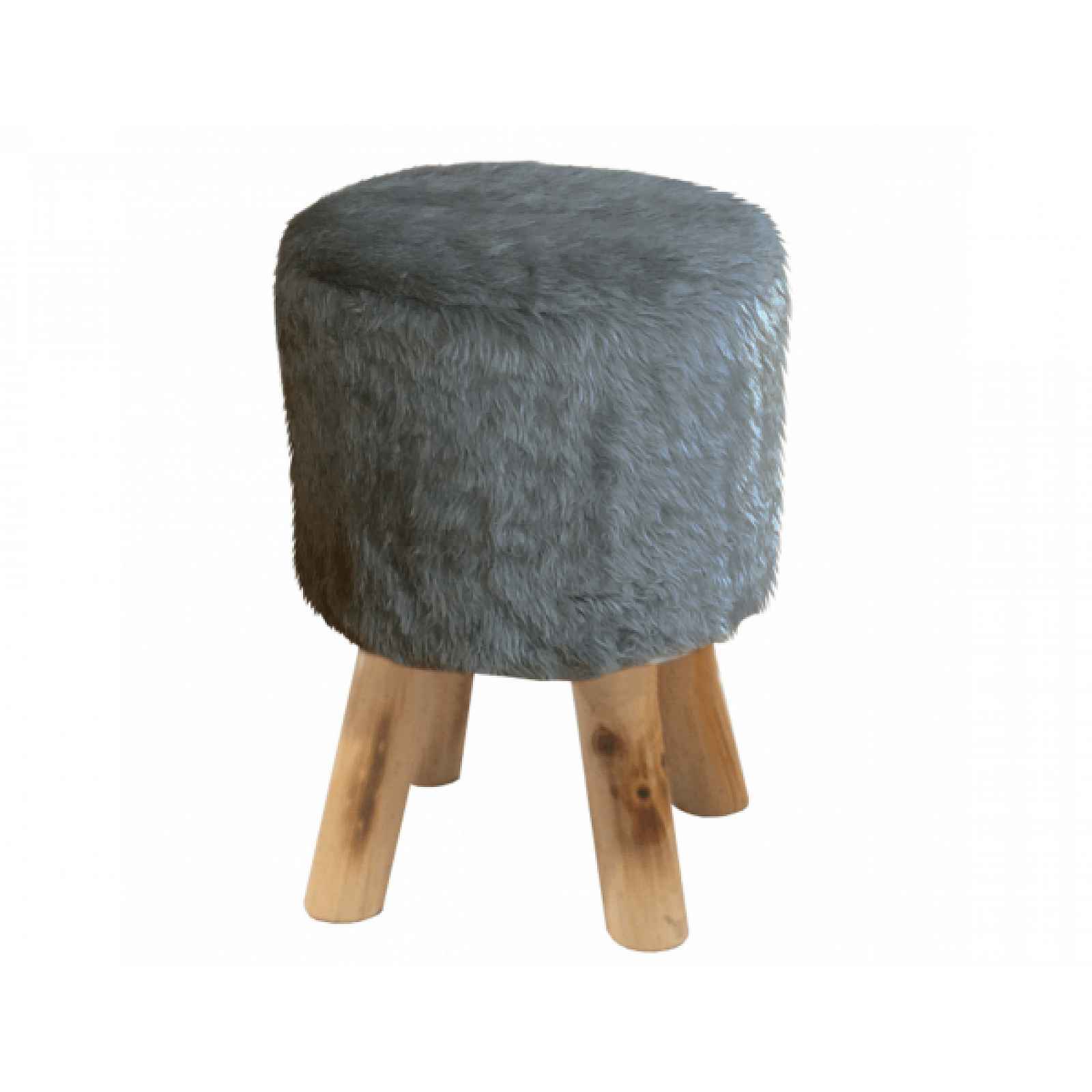 Taburet s dřevěnými nohami ALPIA Materiál: umělá kožešina/borovicové dřevo Barva: šedá Rozměry (ŠxHxV): 28x42x28 cm Nosnost: 80 kg