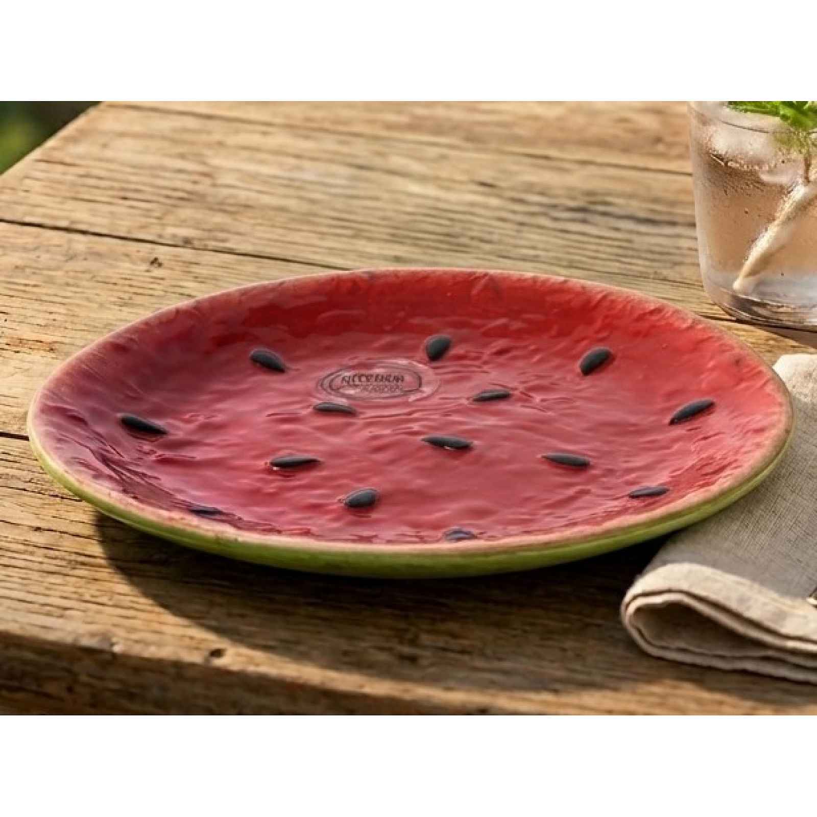 Stylový dezertní talíř 15 cm s motivem melounu je praktickým i designovým doplňkem do kuchyně i na zahradu. Stylový dezertní talíř s motivem melounu je praktickým i designovým doplňkem do kuchyně i na zahradu. Svým hravým vzhledem dodá šmrnc každému stolování, ať už podáváte drobné občerstvení, nebo pořádáte letní party na zahradě. Průměr 16 cm. - materiál: lakovaný dolomit - barva: červená, zelená - povrchová úprava: lesk - motiv: vodní meloun - letní atmosféra po celý rok - univerzální použití: ideální pro stolování nebo jako dekorace - průměr: 16 cm
