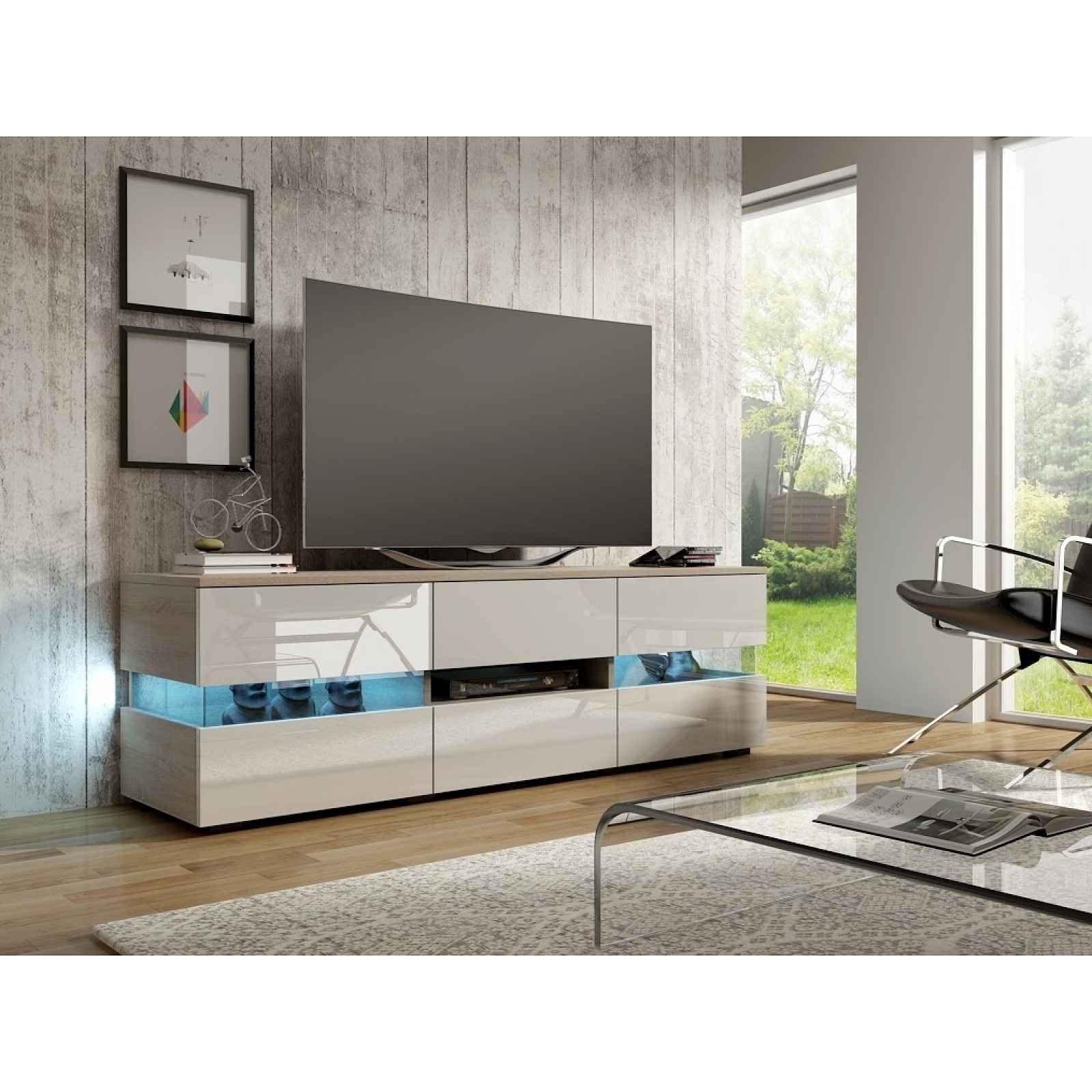 Televizní stolek s dvířky TV stolek má 4 dvířka. Barva: dub sonoma/bílý lesk Rozměry (šxvxh): 140 x 45 x 39 cm Materiál: LTD 16 mm LED osvětlení není v ceně. Dodání v demontu. Záruka 5 let.
